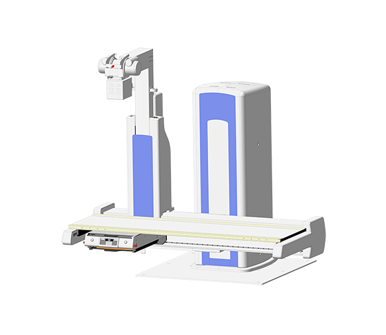 - Продольное перемещение экранно-снимочного устройства (ЭСУ) и излучателя: Возможность перемещения ЭСУ и излучателя более чем на 2 метра вдоль плоскости деки стола обеспечивает максимальную область покрытия и удобство работы.