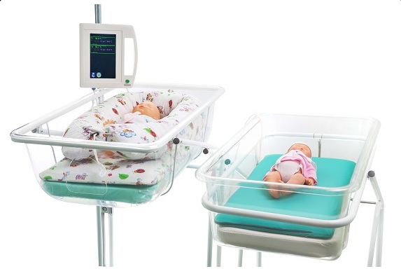 - Опционально система может поставляться с кроватками для новорожденных (пластиковыми кювезами) и штативом для крепления блока регуляции на кроватке.