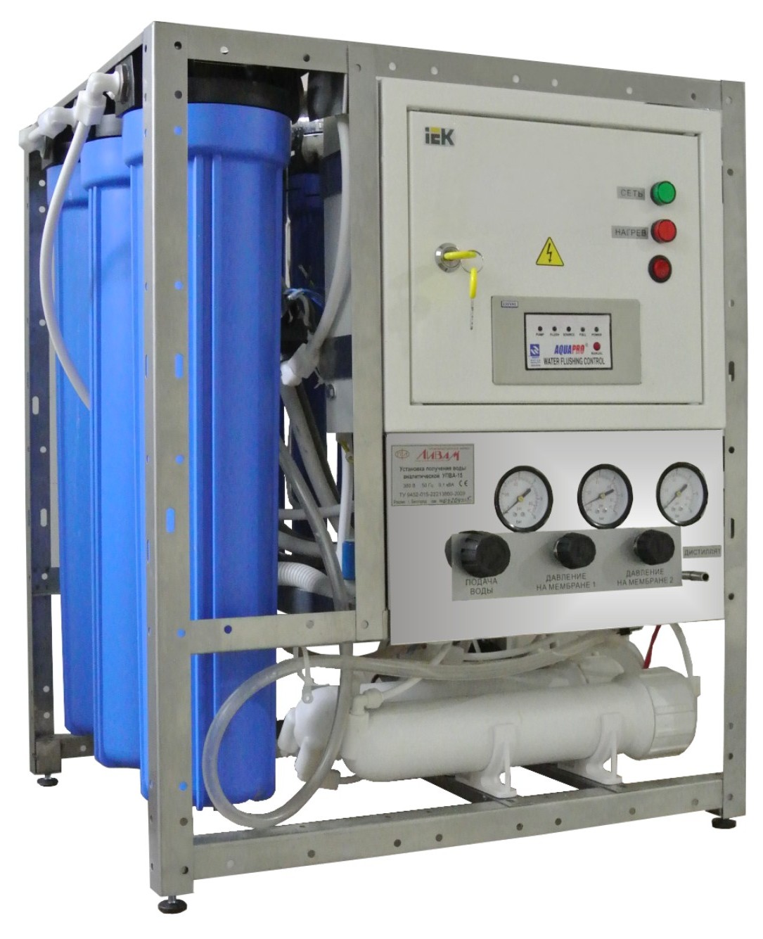 - Установка УПВА-15, предназначенная для получения воды аналитического качества, выполнена из высококачественной зеркальной нержавеющей стали и имеет напольное исполнение.