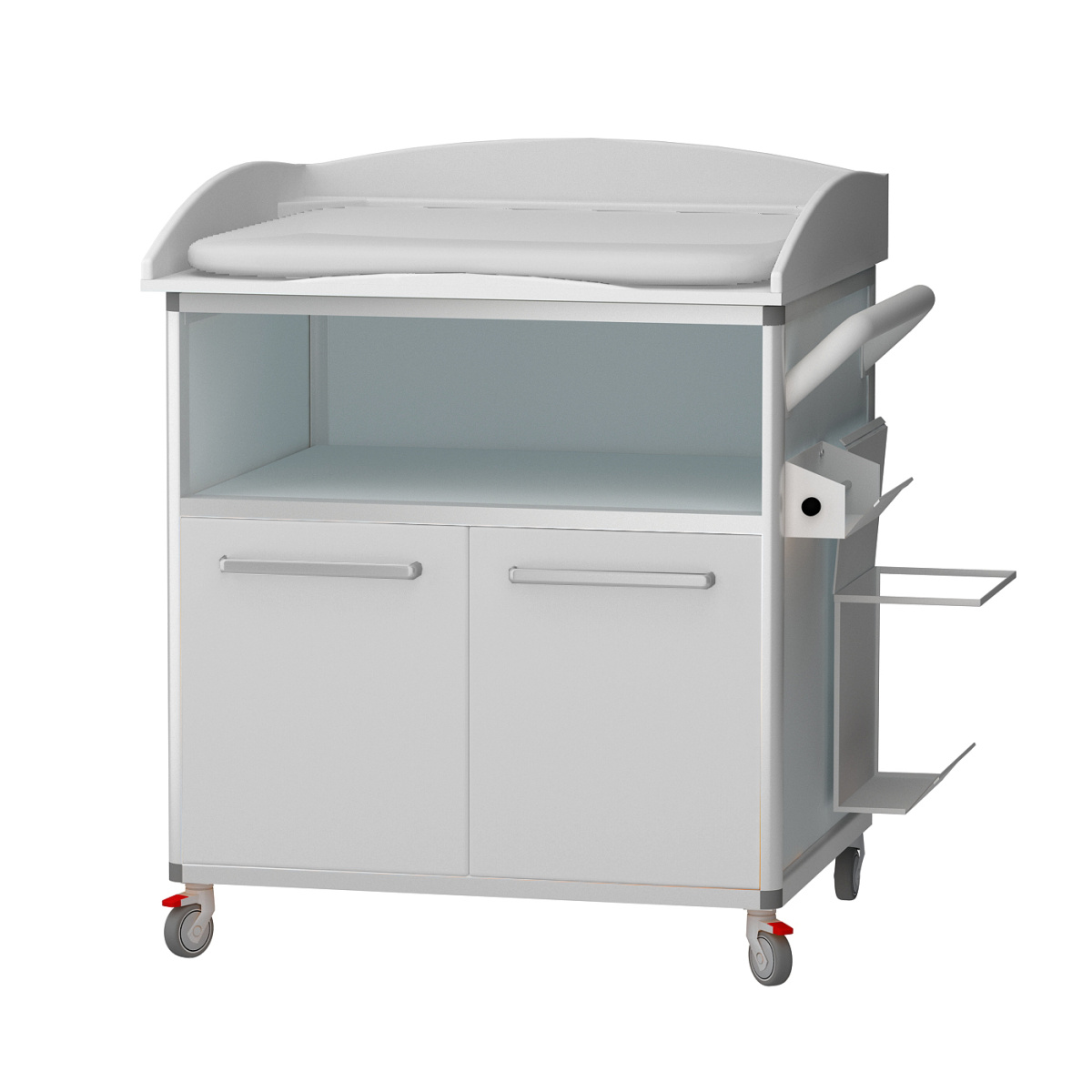 Представляем пеленальный столик М-1-106-46, разработанный для обеспечения максимального комфорта и безопасности в условиях медицинских учреждений. Этот столик, созданный на базе прочного алюминиевого каркаса с полипропиленовыми элементами, идеально подходит для использования в помещениях с повышенными требованиями к дезинфекции, а также в различных лабораториях.