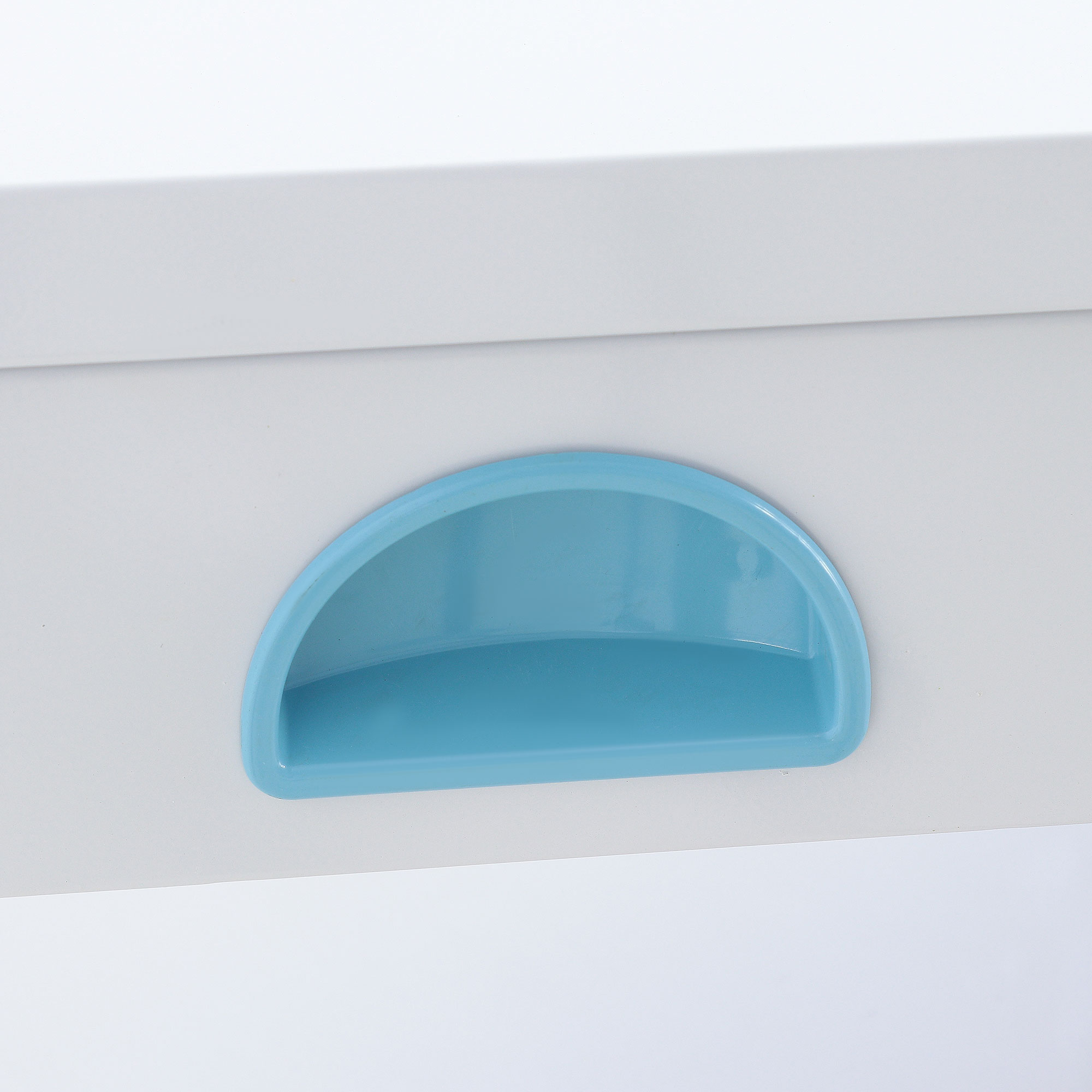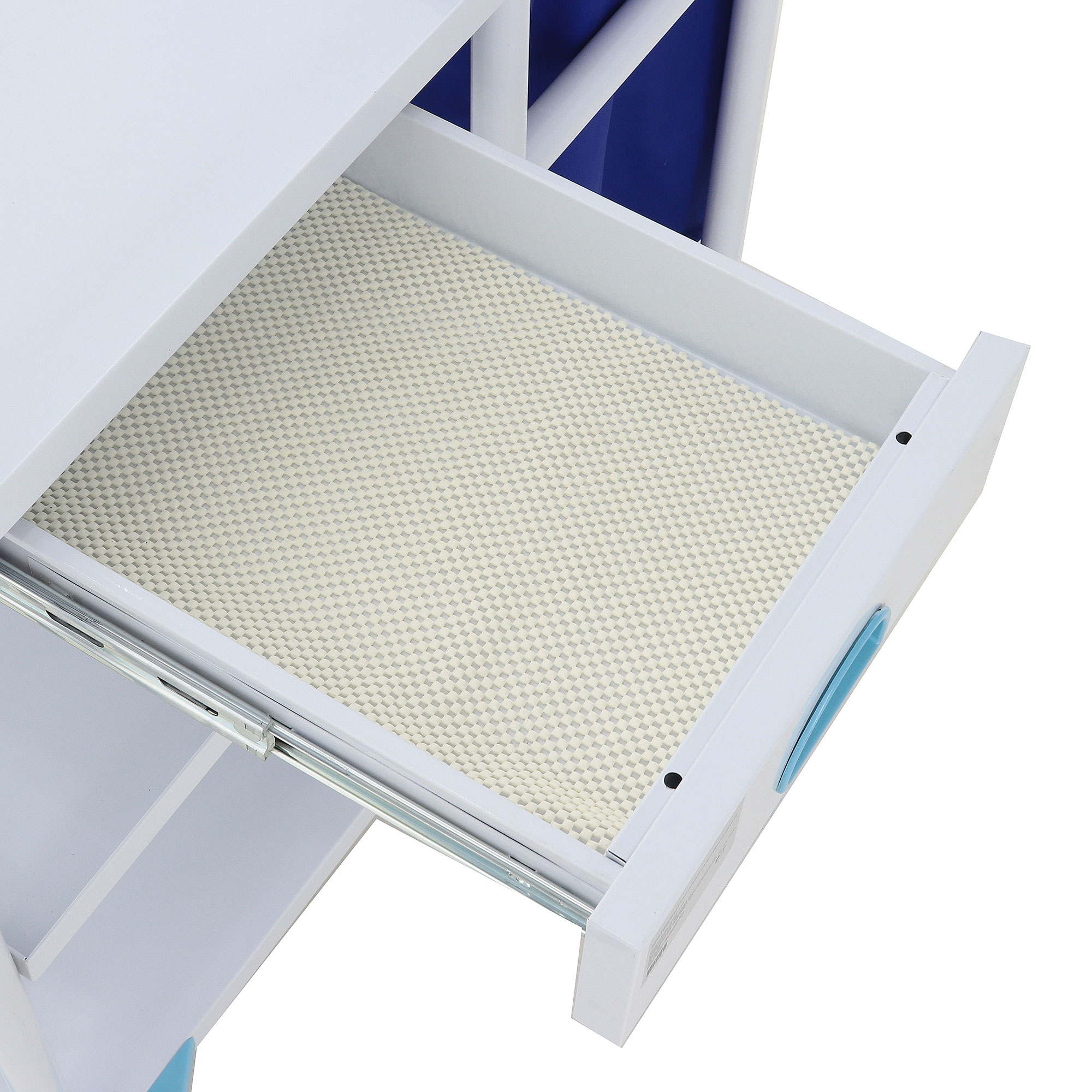 Рабочая секция столика включает в себя удобную столешницу, под которой расположен вместительный выдвижной ящик. Это позволяет хранить необходимые инструменты и расходные материалы в непосредственной близости, обеспечивая быстрый доступ во время процедур. Дополнительные полки значительно увеличивают полезное пространство, способствуя более эффективной организации рабочего места.