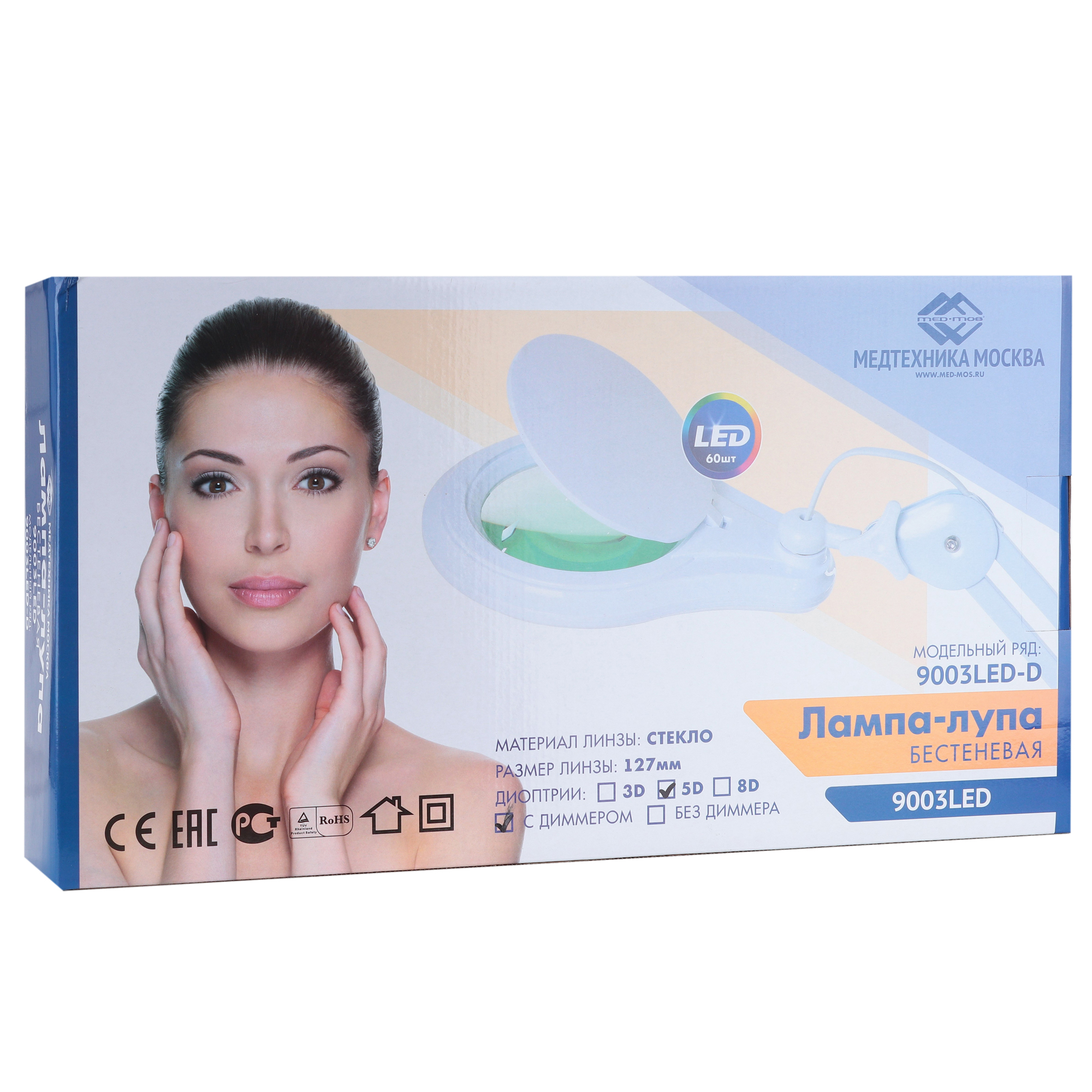 Лампа-лупа 9003LED (9003LED-D) с 60 светодиодами гарантирует безупречно яркое и равномерное освещение рабочего поля, позволяя точно регулировать интенсивность светового потока при помощи диммера. Это делает работу врача более комфортной и эффективной.