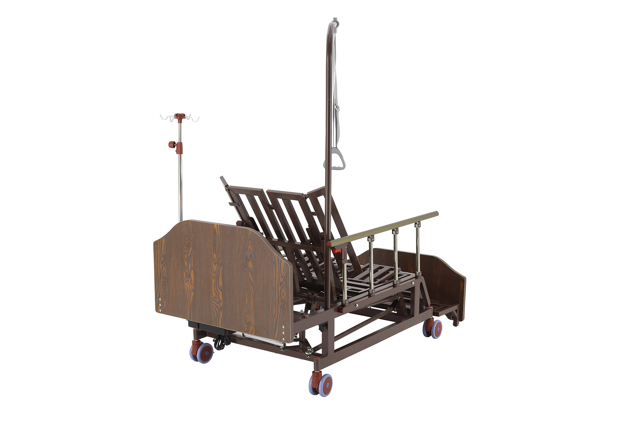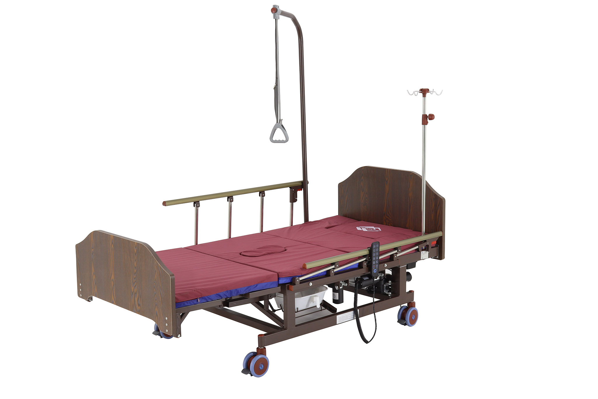 Электрический привод позволяет плавно регулировать положение различных секций кровати, обеспечивая индивидуальный комфорт для каждого пациента. Возможность регулировки ножной, спинной и коленной секций, а также функции подъема головы и ног, делают эту кровать универсальным инструментом для позиционирования.
