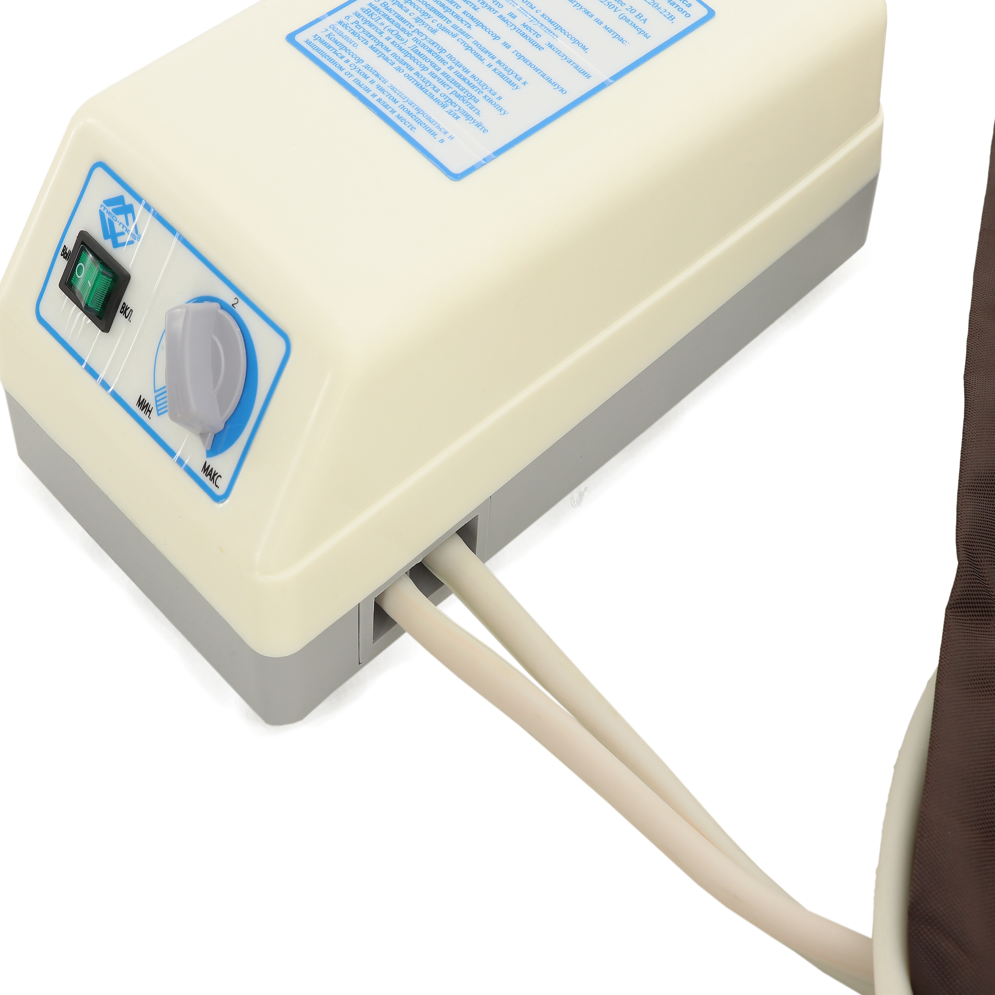 - Воздуховод (1,5 м): соединительный элемент между компрессором и матрасом.