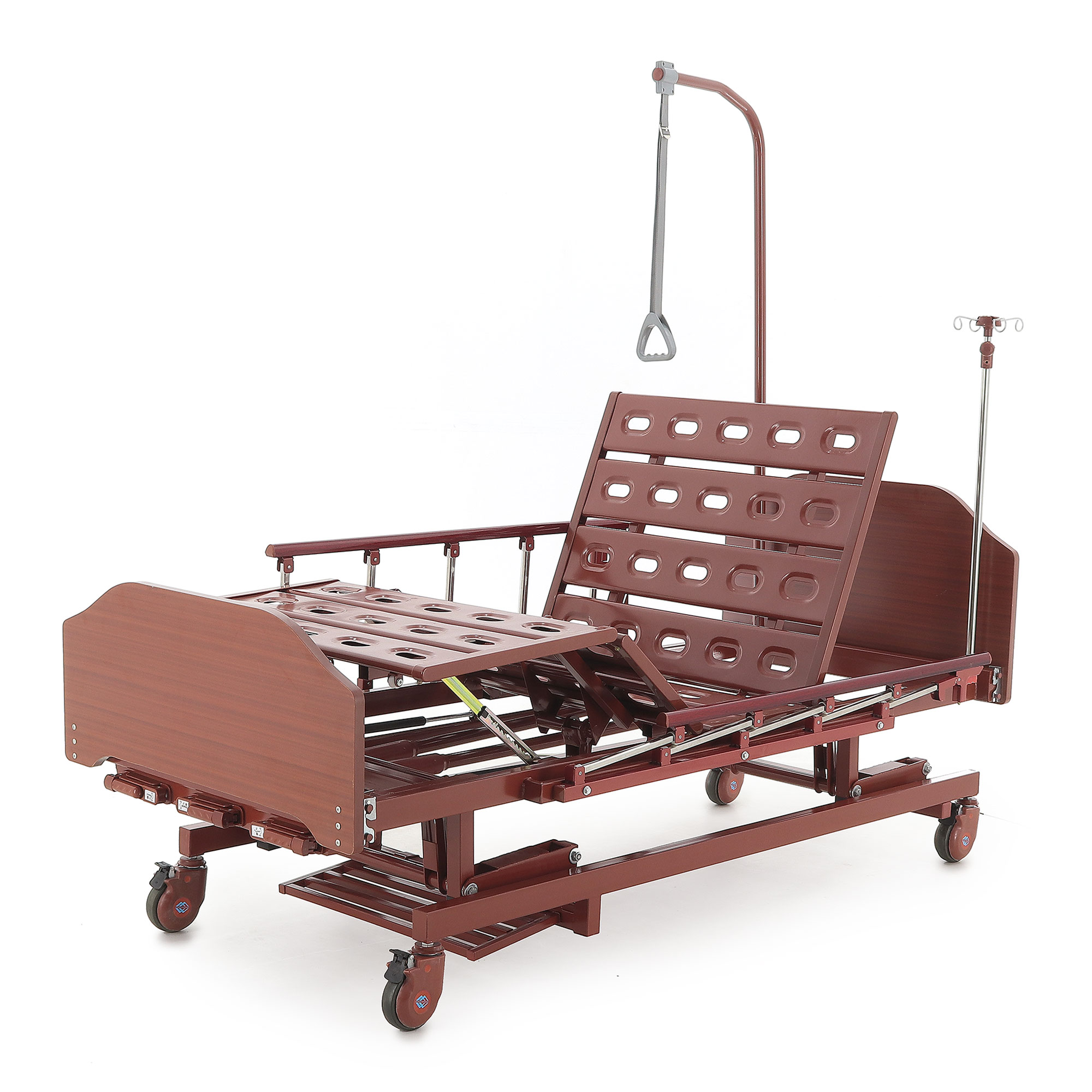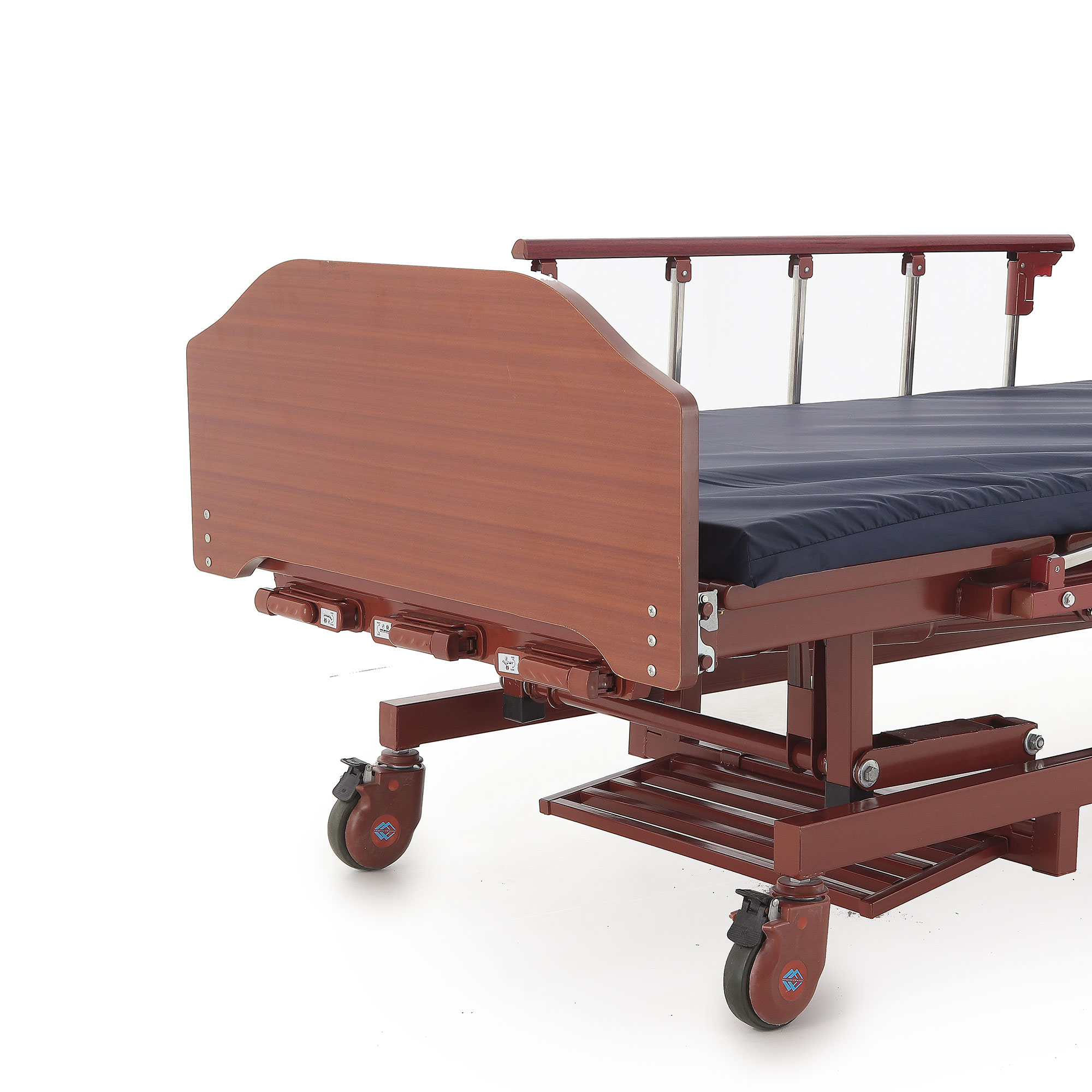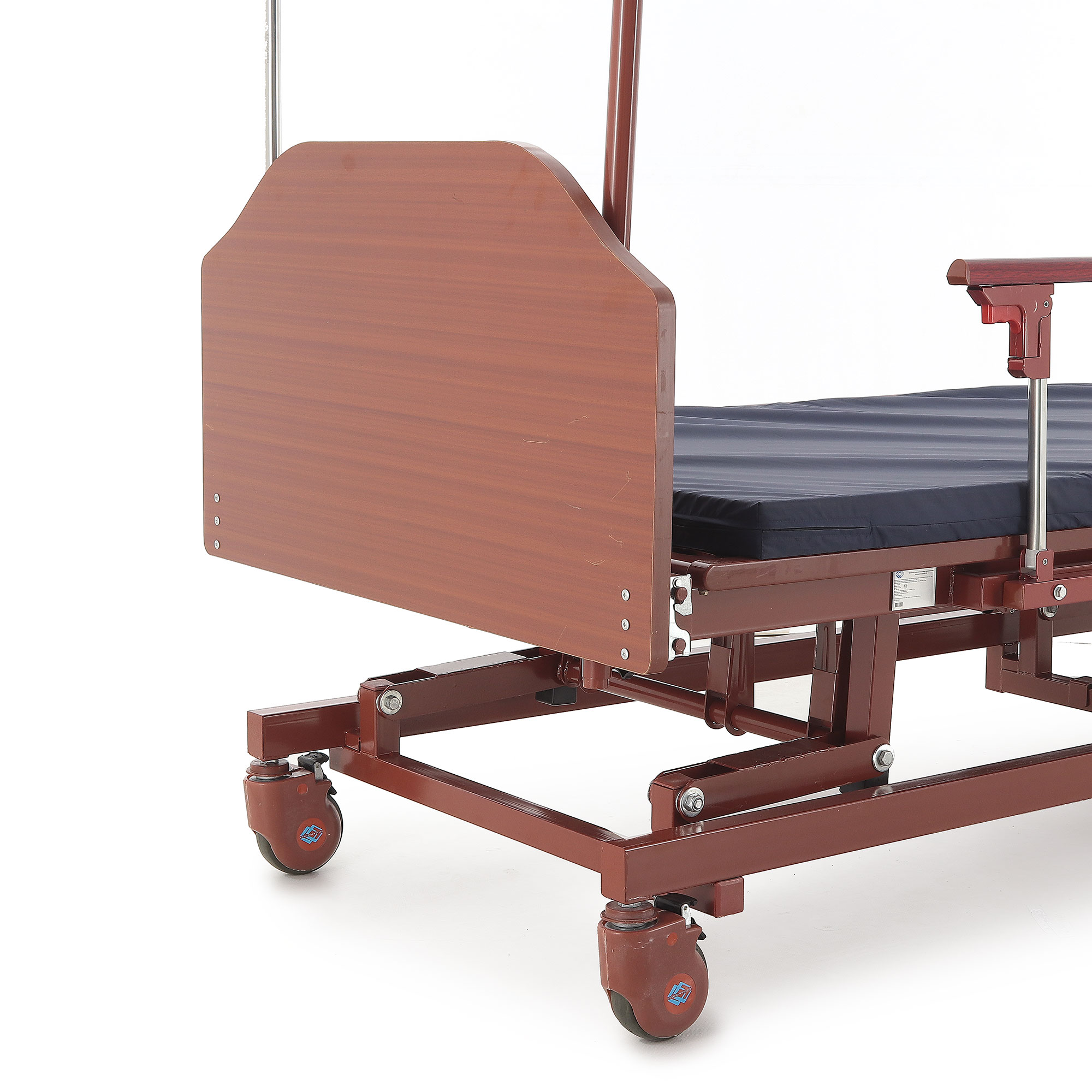 Кровать механическая E-31 (ММ-3024Д-01) ЛДСП (3 функции) с ростоматом и полкой — это оптимальный выбор для ухода за пациентами, нуждающимися в длительном постельном режиме. Сочетание продуманной функциональности, надежности и комфорта делает ее незаменимым инструментом в вашей практике. Прочный каркас из стали, покрытый ударопрочной эпоксидной эмалью, обеспечивает устойчивость к дезинфицирующим средствам. Боковые алюминиевые ограждения и съемные деревянные спинки повышают безопасность и создают уют. Регулировка ножной и головной секций, а также возможность выбора высоты ложа с помощью ростомата, значительно облегчают позиционирование пациента, особенно при переломах шейки бедра. Самоуправляющиеся колеса с индивидуальными тормозами обеспечивают легкое перемещение.