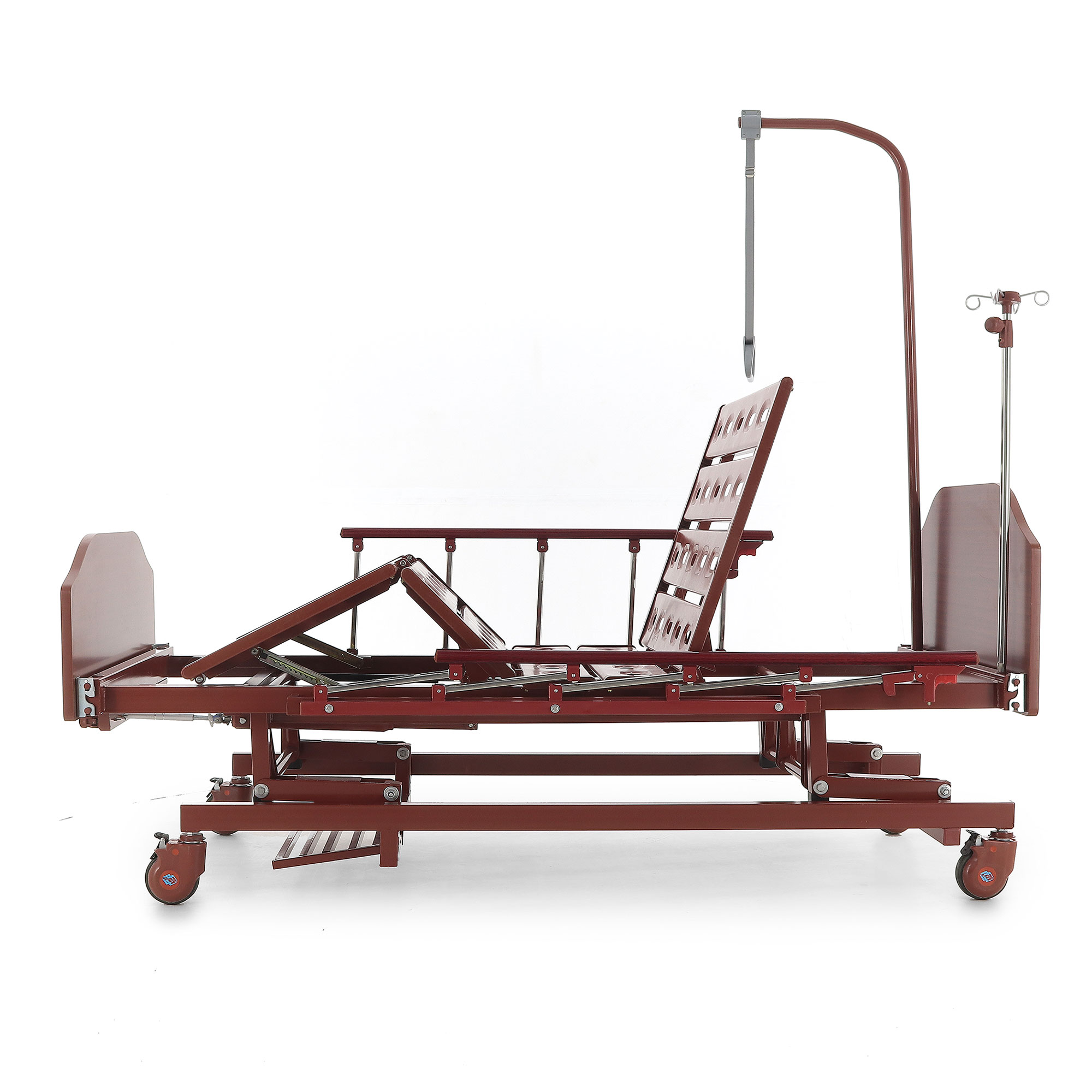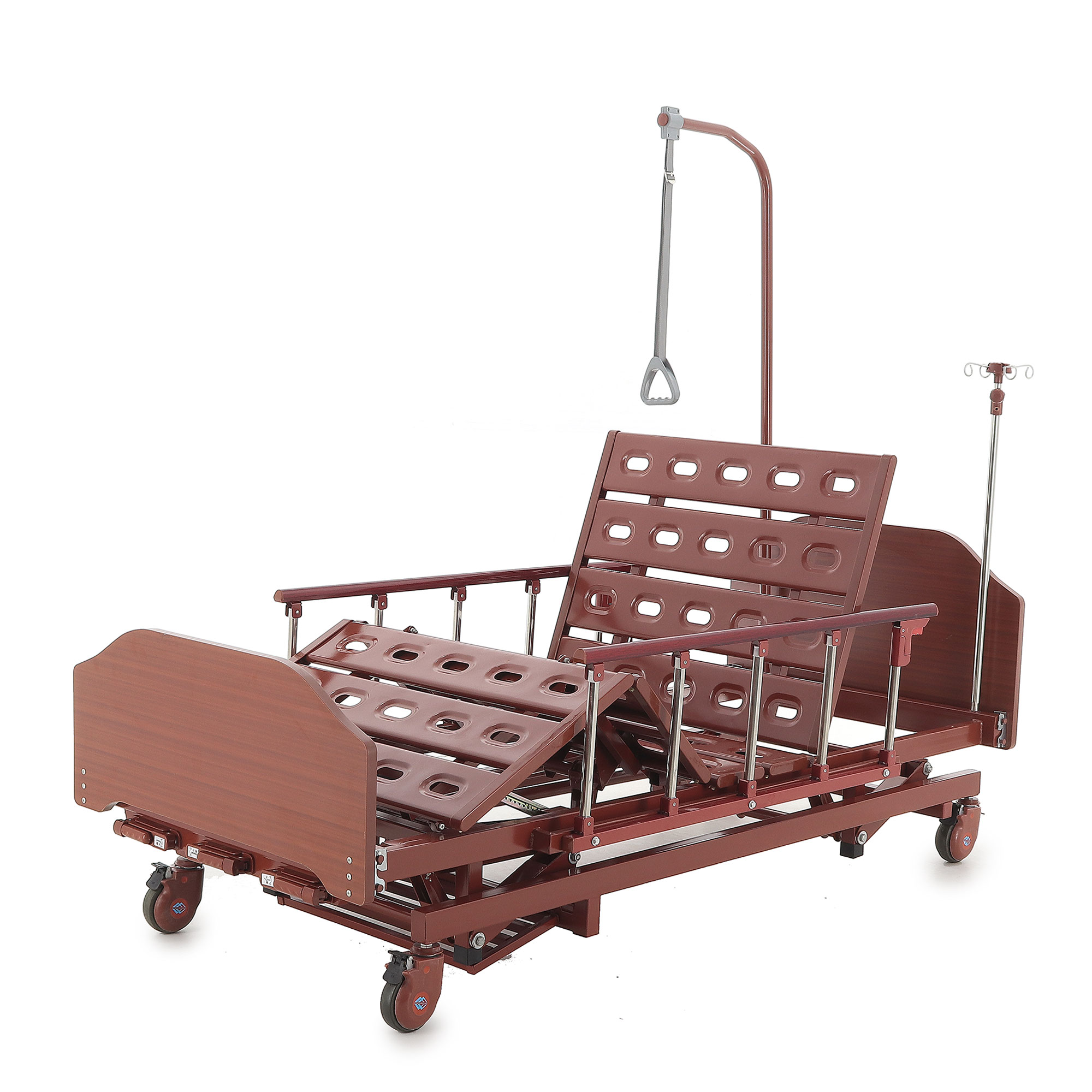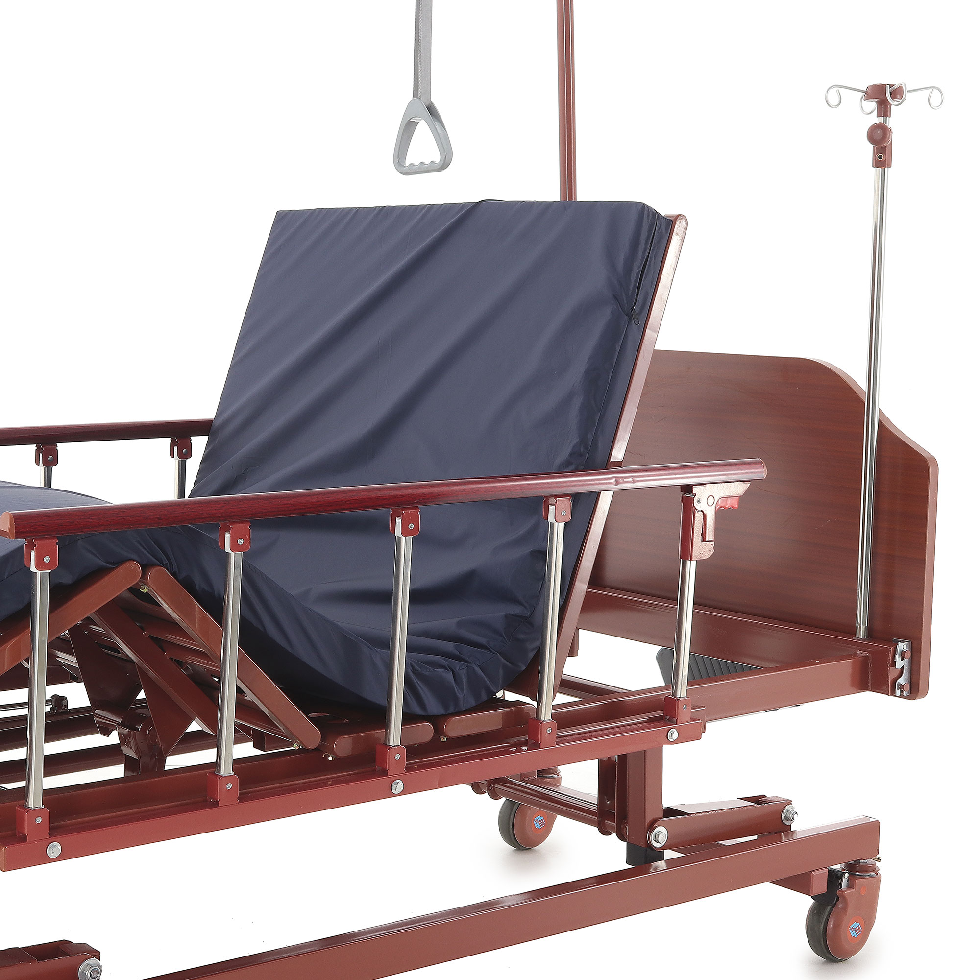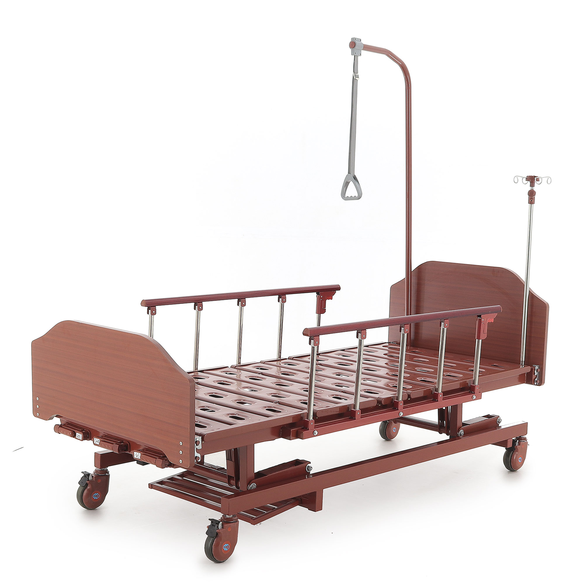Кровать механическая E-31 (ММ-3024Д-01) ЛДСП (3 функции) с ростоматом и полкой — это оптимальный выбор для ухода за пациентами, нуждающимися в длительном постельном режиме. Сочетание продуманной функциональности, надежности и комфорта делает ее незаменимым инструментом в вашей практике. Прочный каркас из стали, покрытый ударопрочной эпоксидной эмалью, обеспечивает устойчивость к дезинфицирующим средствам. Боковые алюминиевые ограждения и съемные деревянные спинки повышают безопасность и создают уют. Регулировка ножной и головной секций, а также возможность выбора высоты ложа с помощью ростомата, значительно облегчают позиционирование пациента, особенно при переломах шейки бедра. Самоуправляющиеся колеса с индивидуальными тормозами обеспечивают легкое перемещение.