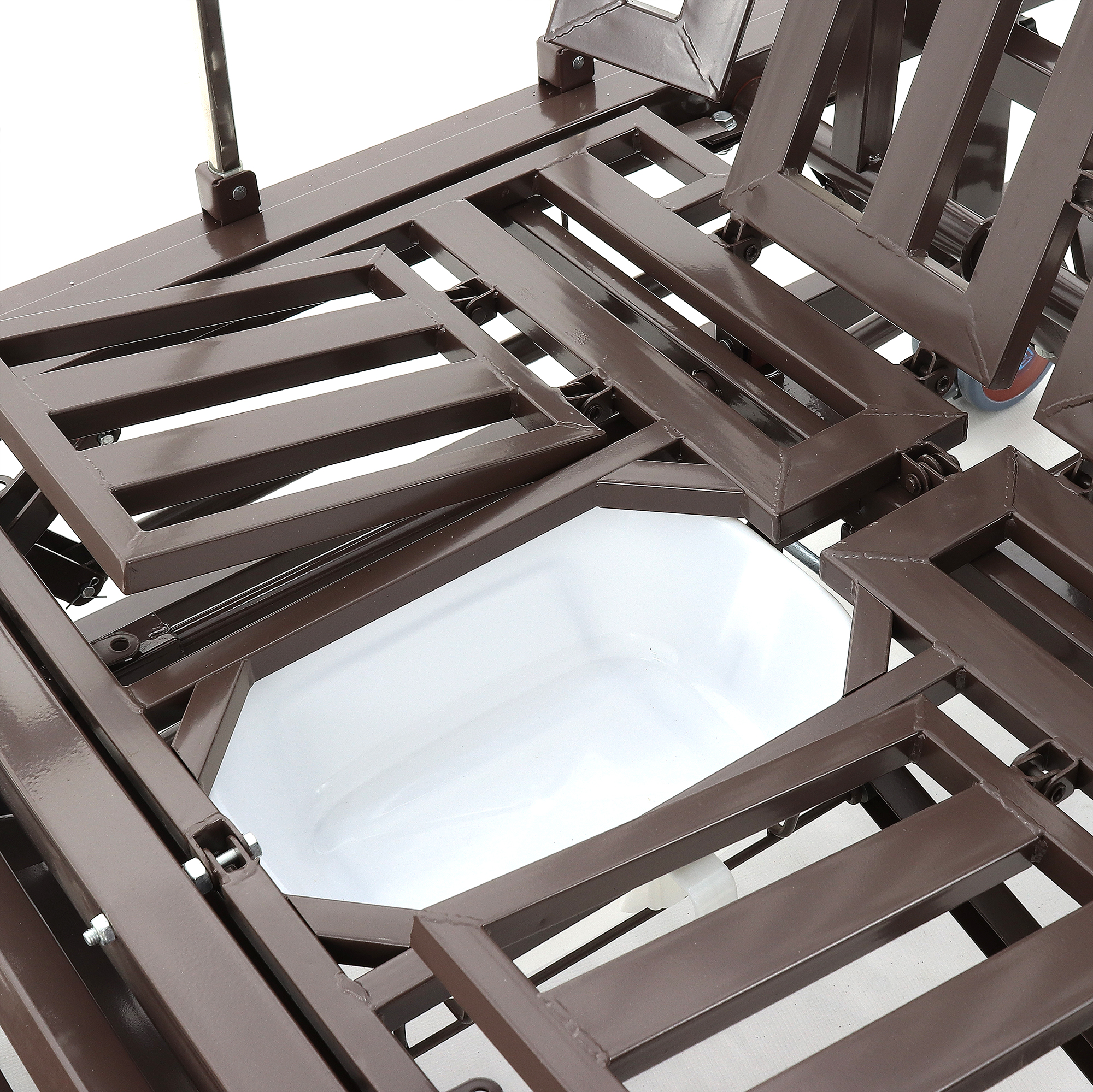 Дополнительный комфорт обеспечивает встроенное туалетное устройство. Оно значительно снижает физический и психологический дискомфорт, связанный с естественными надобностями. Принцип работы прост и гигиеничен: судно, закрепленное на подвижной платформе, поднимается с помощью специального механизма.