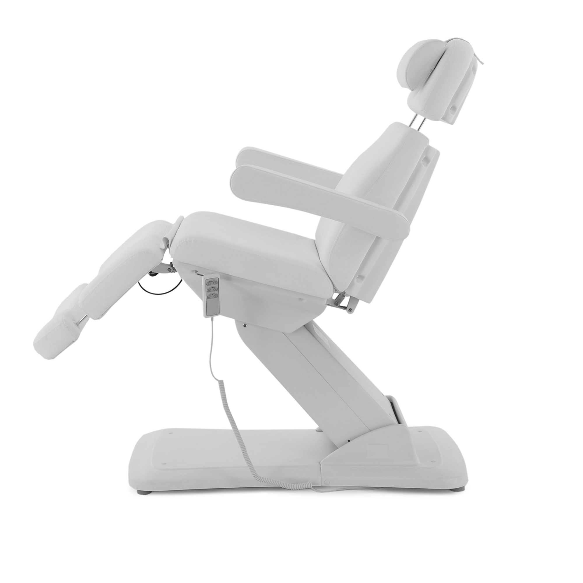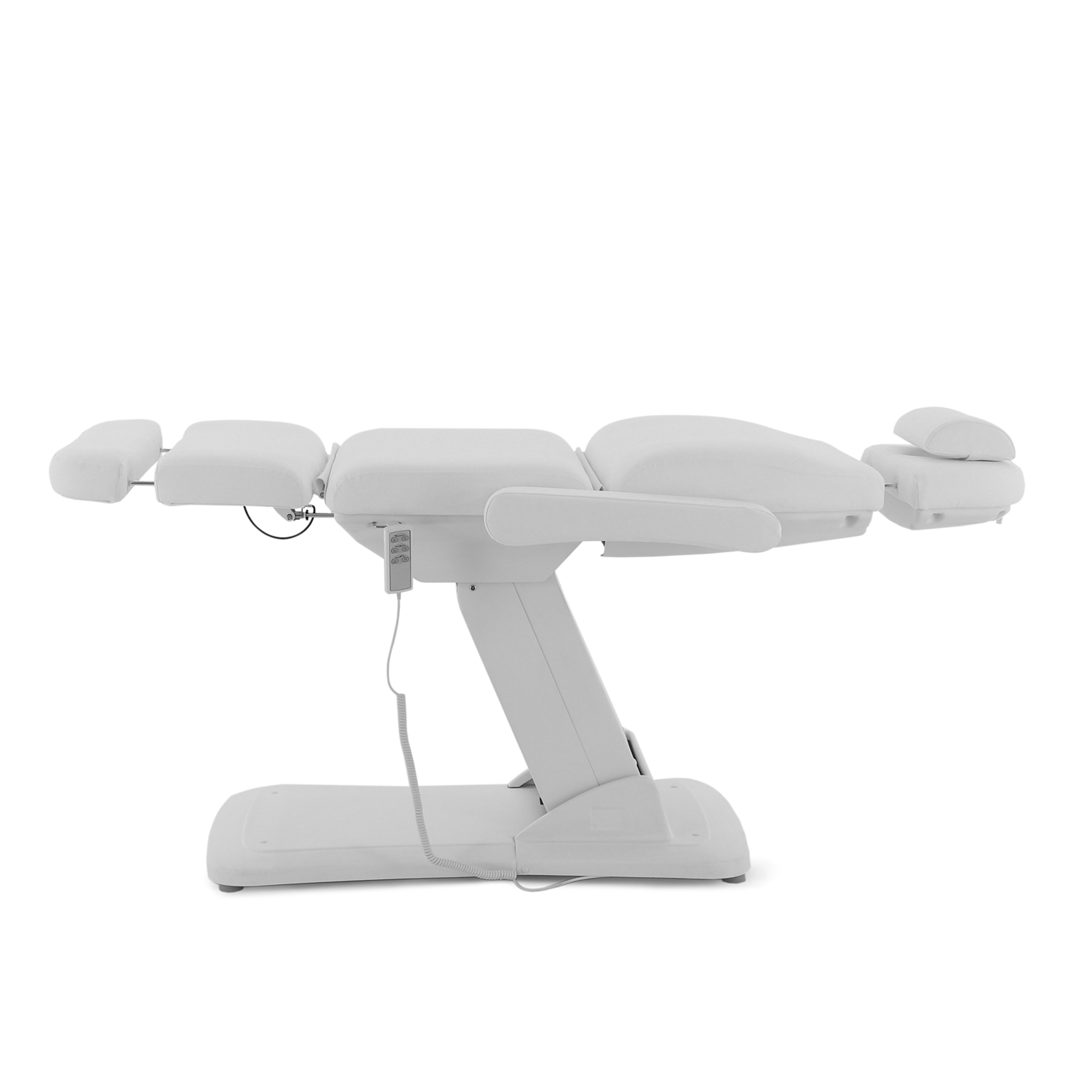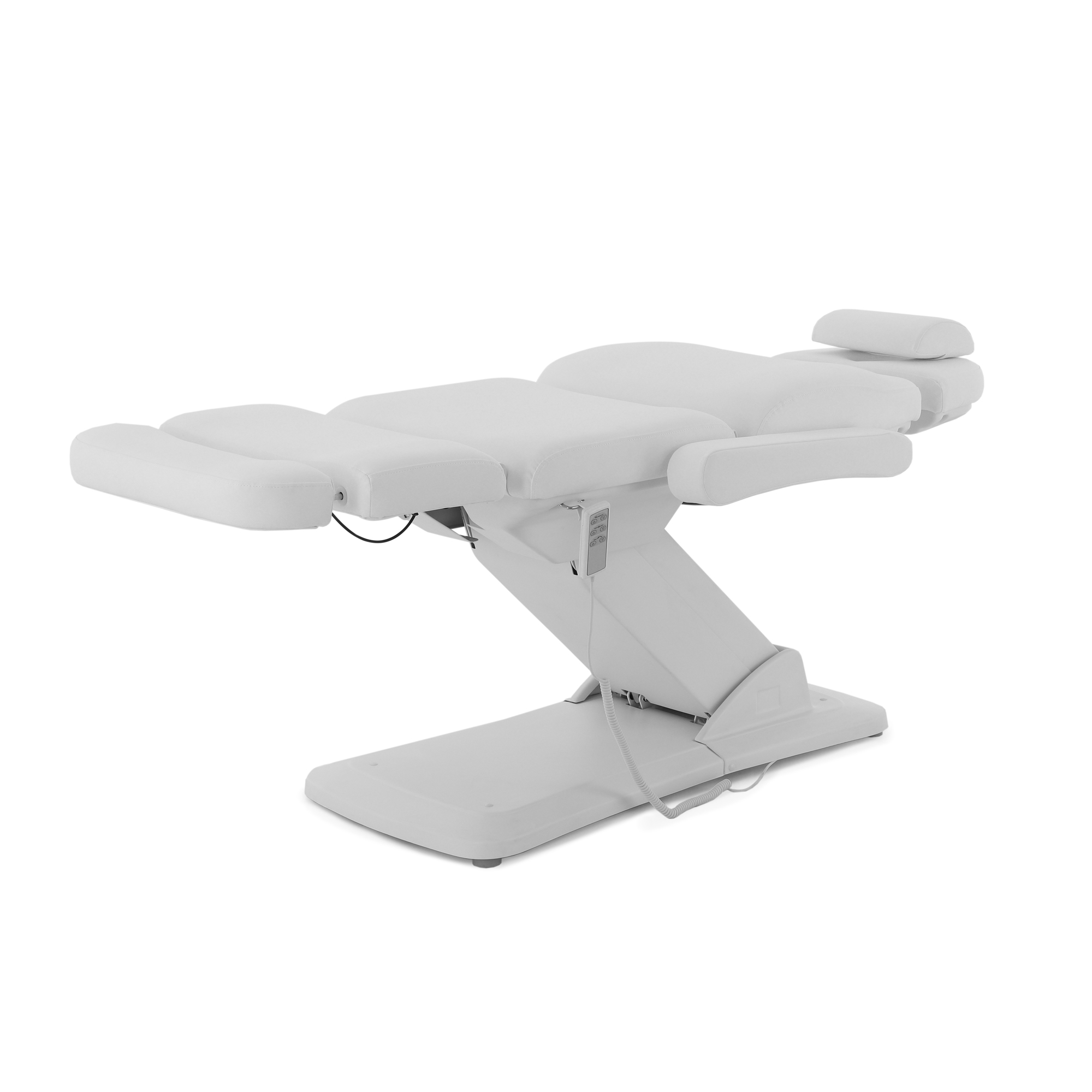 - Многосекционное ложе кресла, оснащенное тремя электроприводами, обеспечивает плавную и точную регулировку высоты, а также угла наклона всех подвижных частей. Это позволяет специалисту легко адаптировать кресло под любую процедуру и задачу.