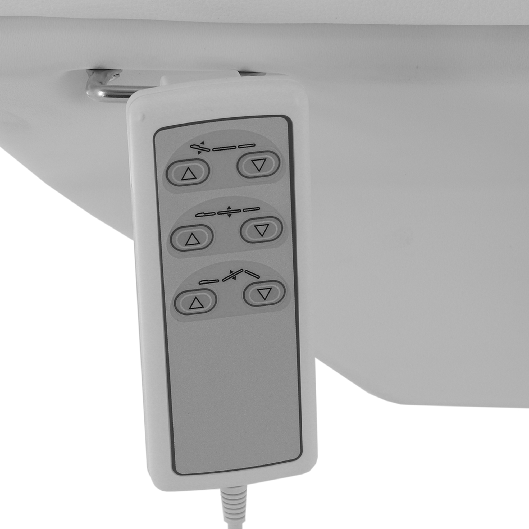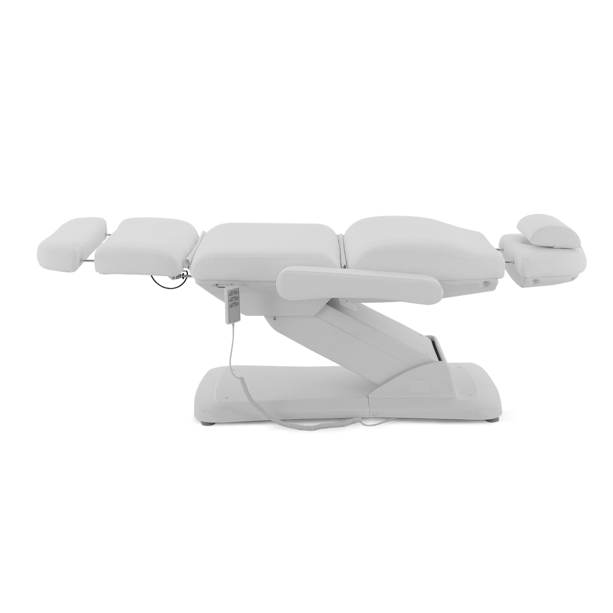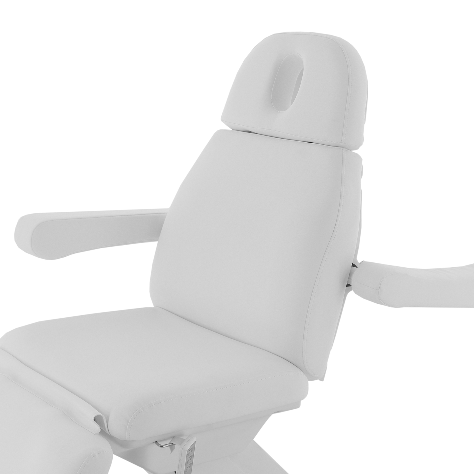 - Многосекционное ложе кресла, оснащенное тремя электроприводами, обеспечивает плавную и точную регулировку высоты, а также угла наклона всех подвижных частей. Это позволяет специалисту легко адаптировать кресло под любую процедуру и задачу.