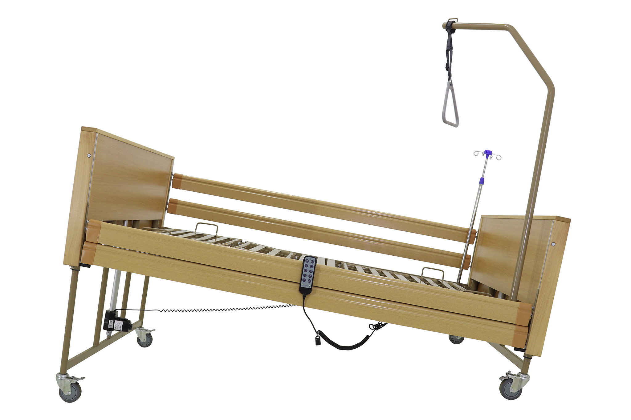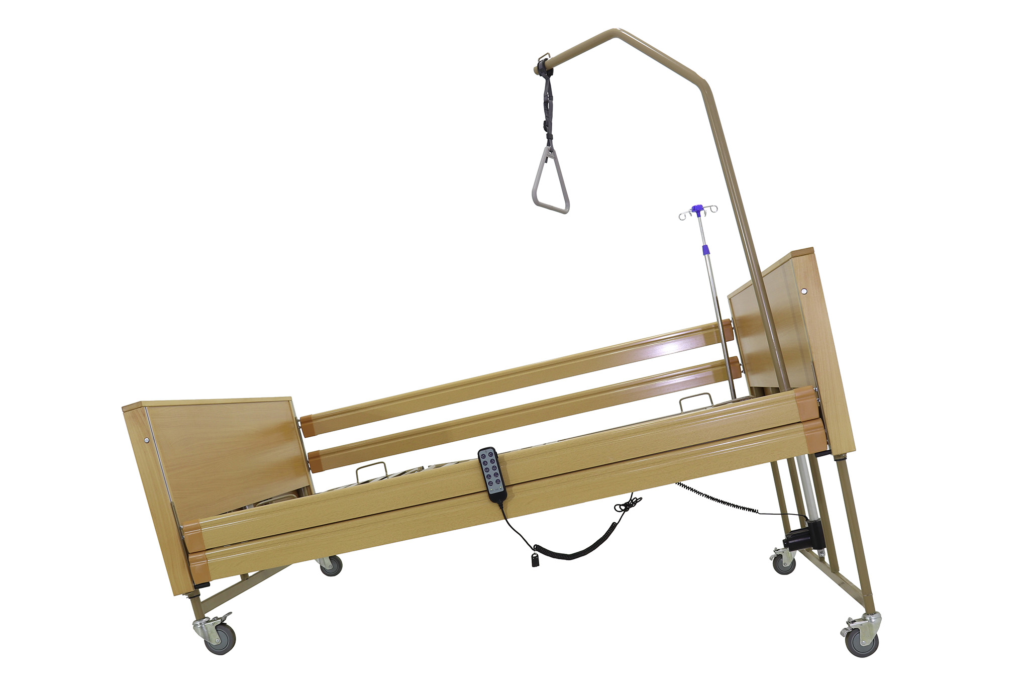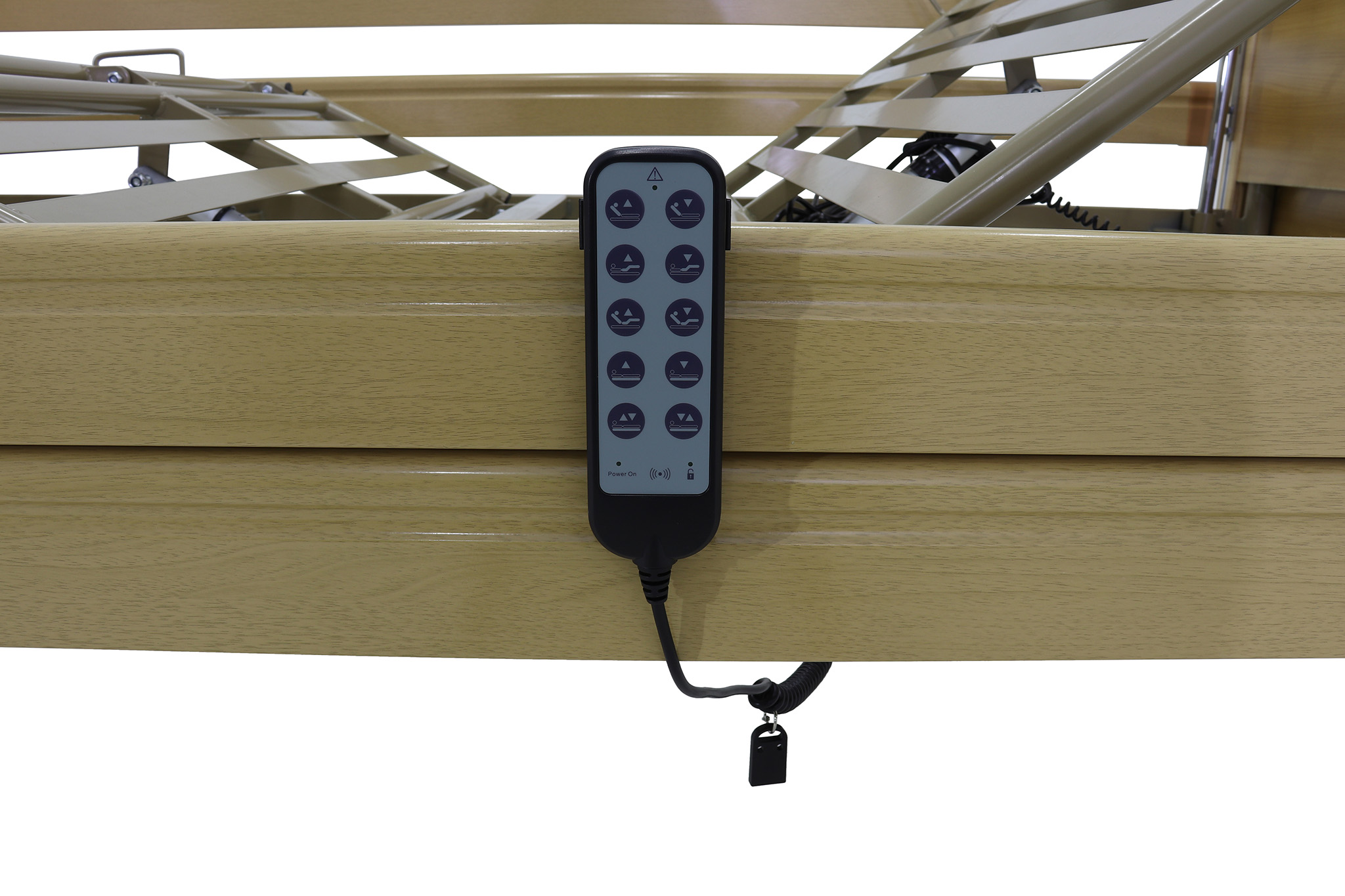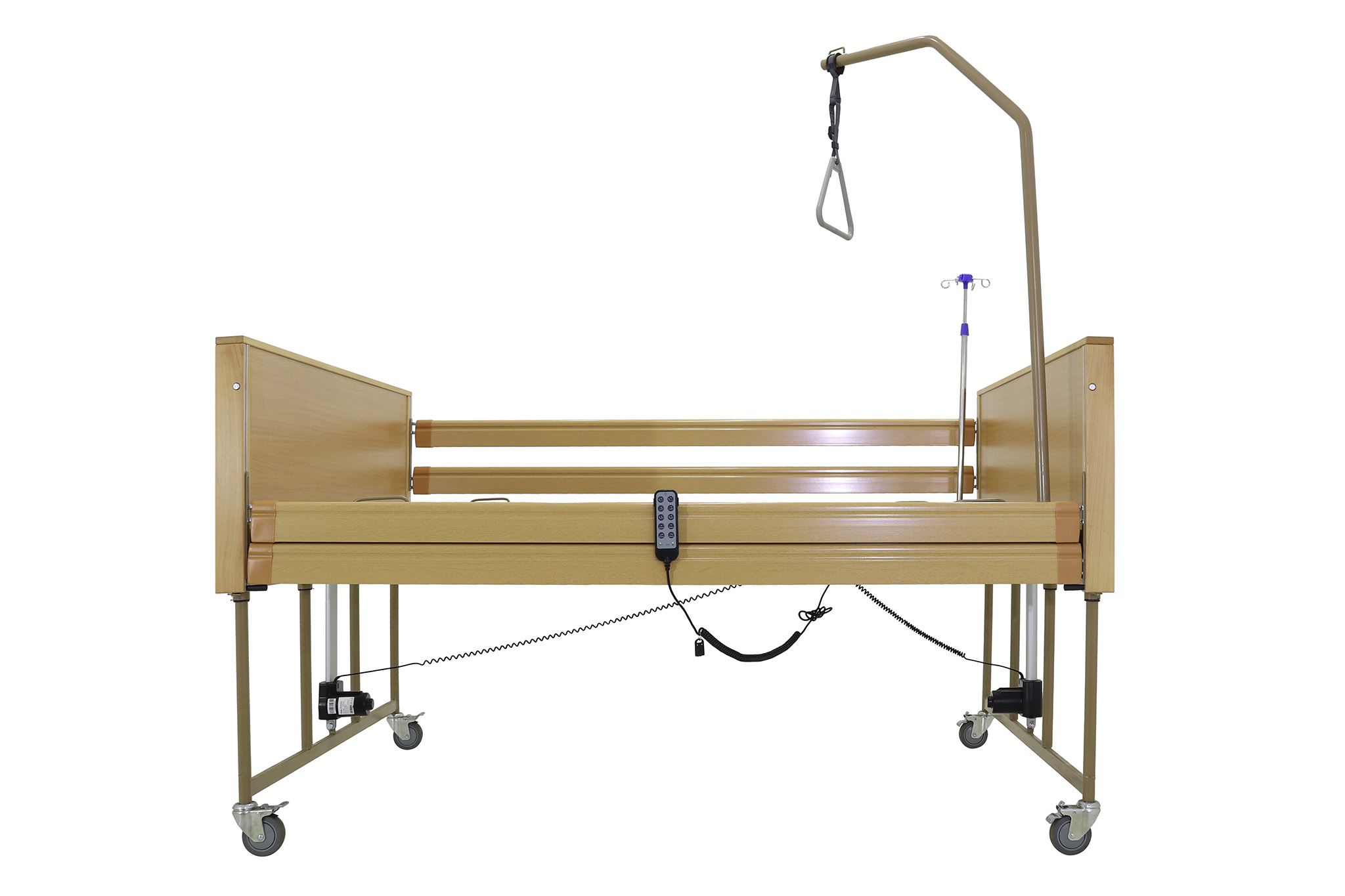 Оснащенная электроприводом, кровать позволяет без усилий со стороны персонала регулировать секции и высоту ложа, что значительно упрощает ежедневные процедуры. Пациенты могут самостоятельно изменять положение с помощью удобного дистанционного пульта управления, способствуя их автономности и комфорту.