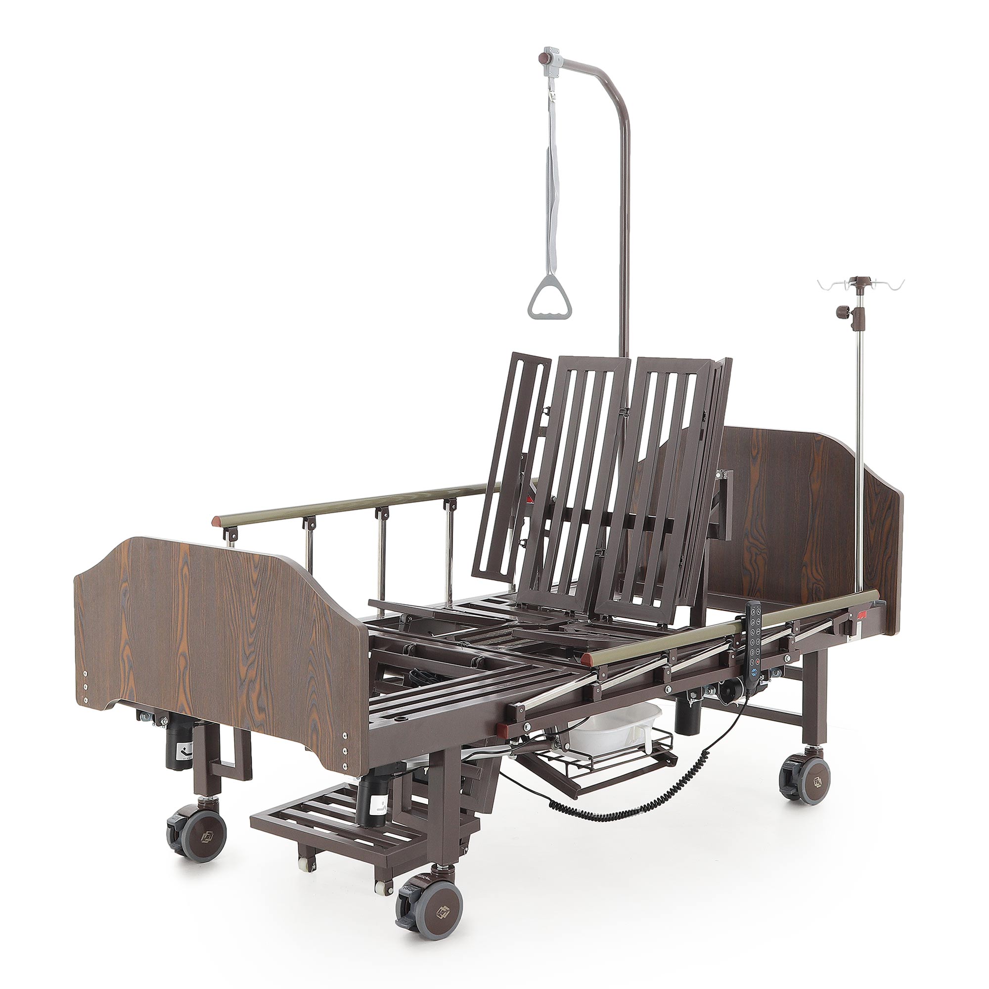 Инновационная электрическая кровать YG-3 представляет собой гибридное решение, разработанное для максимального комфорта и ухода за пациентами как в стационарных, так и в домашних условиях. Ее уникальная конструкция включает функции бокового переворачивания, интегрированное туалетное устройство и «кардиокресло», что обеспечивает всестороннюю поддержку и адаптацию к индивидуальным потребностям пациента.
