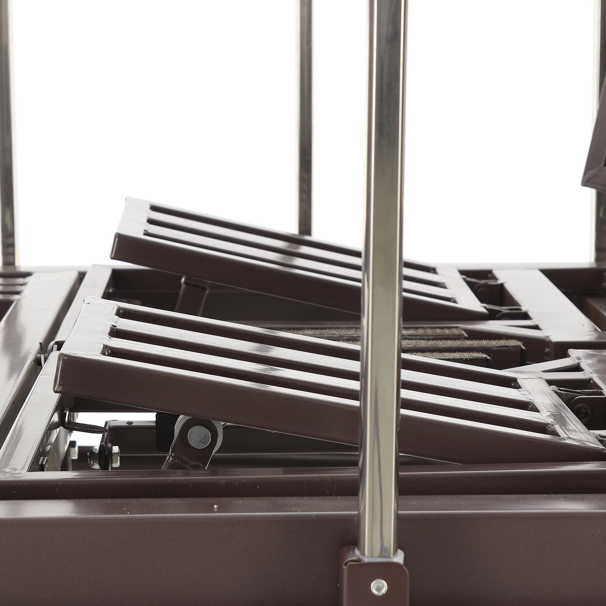 Уход за оборудованием максимально упрощен: каркас кровати легко моется и чистится, допускается использование дезинфицирующих средств для поддержания гигиены.