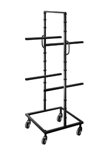 Эргономичные ручки из трубы диаметром 15 мм, выполненные в виде скобы, расположены симметрично по бокам, что делает перемещение тележки комфортным и безопасным. Для надежной фиксации корзин предусмотрены поперечные балки и 24 крючка из стали толщиной 2 мм, равномерно распределенные на передних и задних плоскостях стоек (по 6 штук на каждой плоскости).