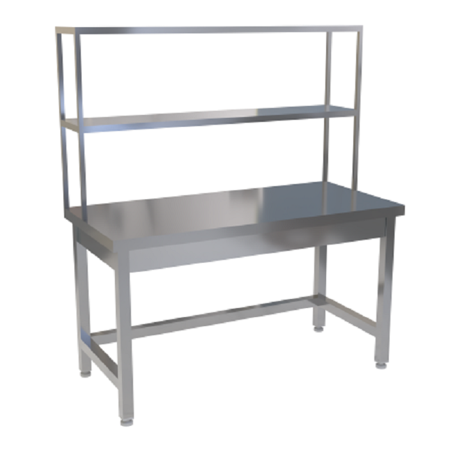 Вся конструкция стола выполнена из высококачественной нержавеющей стали марки AISI 304, известной своей устойчивостью к коррозии и долговечностью, что гарантирует длительный срок службы и соответствие строгим санитарным нормам.