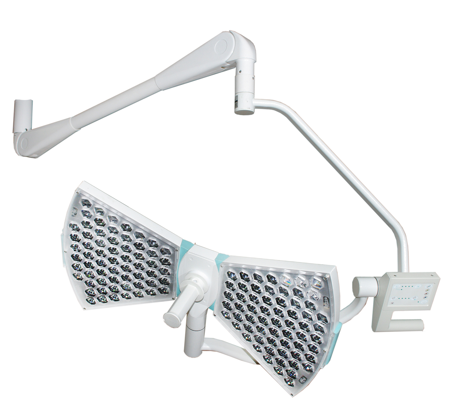 Каждый осветительный блок оснащен интуитивно понятным пультом управления. Он предоставляет полный контроль над параметрами освещения, включая регулировку интенсивности и фокусировки (электронное изменение размера светового поля). На пульте расположены все необходимые органы настройки, световые индикаторы текущих режимов работы, а также удобные регуляторы для изменения диаметра светового поля и фокусировки. Эргономичные кнопки с легким нажатием предотвращают нежелательное смещение светового блока во время регулировки.