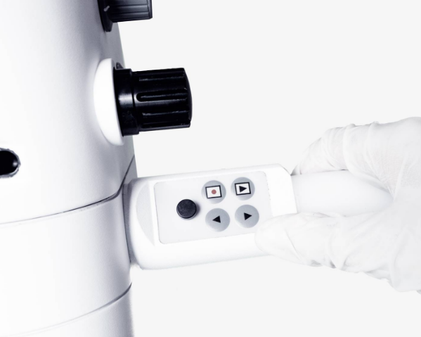 - Мультифункциональное управление: Удобная ручка микроскопа позволяет легко управлять зумом, фокусом, интенсивностью подсветки и мультимедийными функциями.