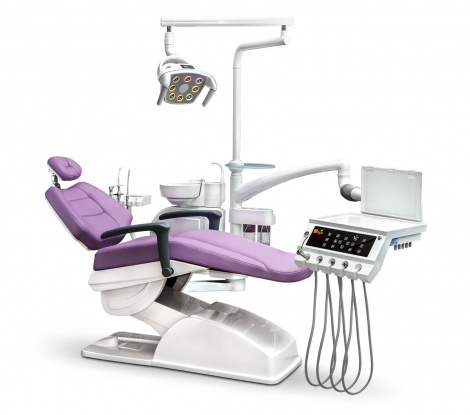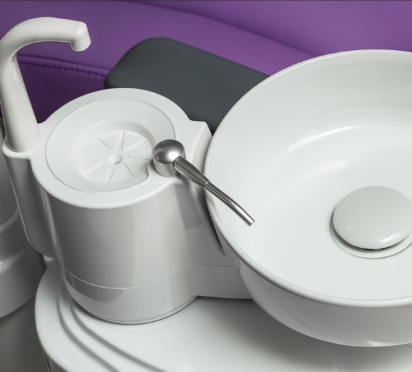 - Гигиена и практичность: Разборная керамическая плевательница, поворачивающаяся на 90 градусов, оснащена функциями автоматического обмывания чаши и наполнения стакана, а также подогревом. Две встроенные емкости для дистиллированной воды и дезинфекции в гидроблоке упрощают поддержание асептики.