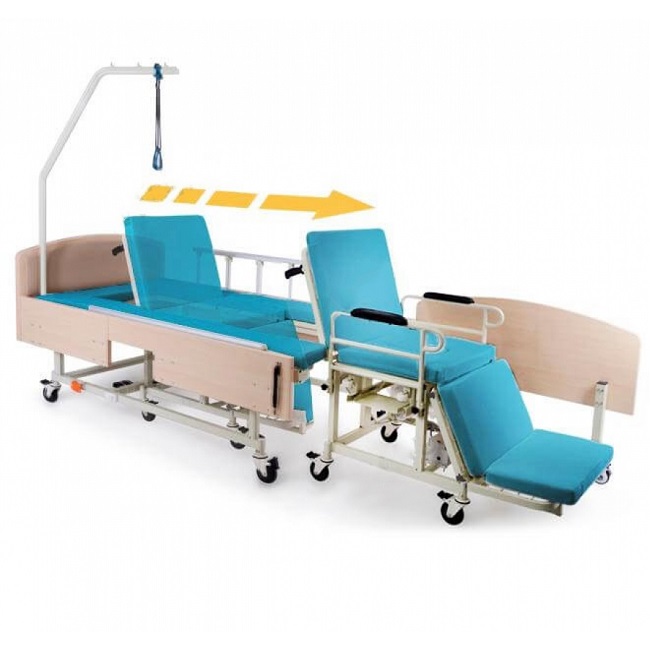 Представляем функциональную кровать MET INTEGRA 3 в 1 — инновационное решение для обеспечения комфорта и ухода за пациентами, требующими особой поддержки. Эта электроприводная односпальная кровать, обладающая шириной 1 метр, существенно облегчает процесс перемещения пациента в кресло-каталку, предназначенную как для домашнего использования, так и для прогулок на улице, и оснащенную санитарным устройством.