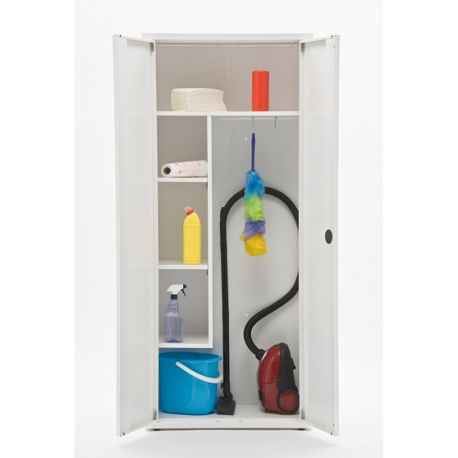 - Внутреннее наполнение шкафа: Металлический конструктив для уборочного инструментария и аксессуаров
