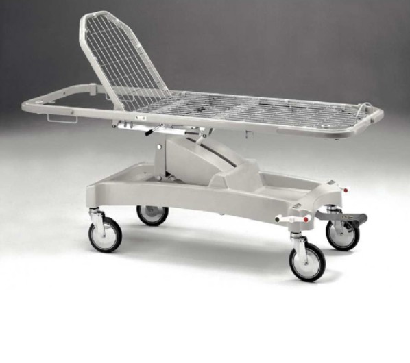 Регулировка спинной секции осуществляется плавно с помощью пневматической пружины, управляемой с обеих сторон кушетки. Изменение высоты ложа происходит благодаря гидравлической помпе с педальным управлением со стороны ног пациента, использующей подъемный механизм типа «пантограф». Положения Тренделенбург и антиТренделенбург легко активируются пневматической пружиной с помощью красной ручки, расположенной в изножье кушетки.Надежное и Устойчивое Основание