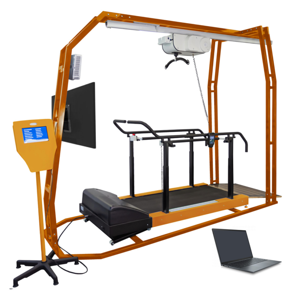 - Система поддержки и разгрузки веса тела пациента за счет подвесных или рельсовых систем;