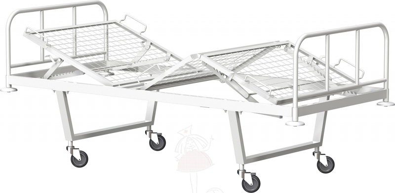 Функциональная трехсекционная кровать с регулировкой секций при помощи гребенки и удобными колесами обеспечит оптимальный комфорт и уход за пациентами в условиях стационара.