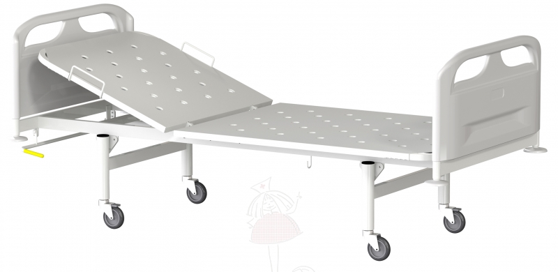 - Ложе кровати состоит из стальных труб и перфорированных металлических панелей толщиной 0,8 мм, обеспечивая оптимальное положение пациента и свободную циркуляцию воздуха под матрасом.