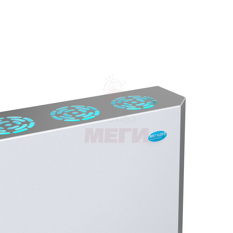 Обеззараживание воздушного потока достигается за счет принудительной циркуляции через прочный металлический корпус с использованием вентилятора. Внутри корпуса расположены четыре безозоновые бактерицидные лампы низкого давления МЕГИДЕЗ, каждая мощностью 30 Вт. Ультрафиолетовое излучение этих ламп эффективно уничтожает патогенные микроорганизмы, обеспечивая выход чистого, обеззараженного воздуха обратно в помещение. Для оптимальной циркуляции воздуха рекомендуется настенное или напольное размещение рециркулятора.