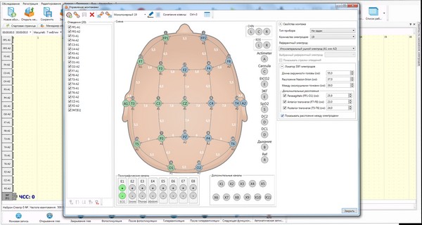 - 39 ЭЭГ-каналов, выделенные каналы для ЭКГ и ЭОГ, 8 дополнительных дифференциальных каналов