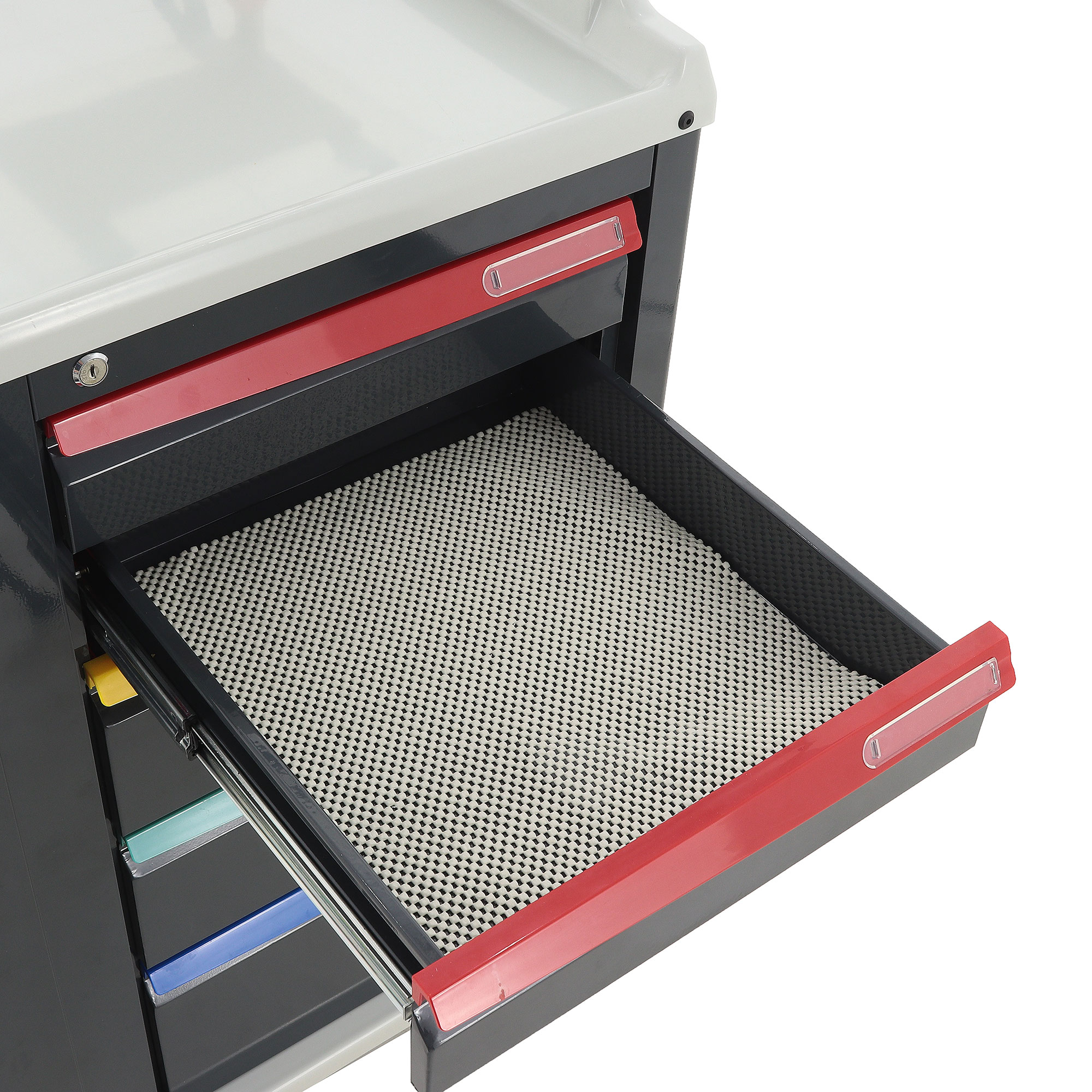 - Многофункциональность хранения: Столик оснащен пятью вместительными ящиками различных размеров, что позволяет систематизировать хранение и обеспечить быстрый доступ к необходимым предметам. Два ящика типа 1 (610×540×135 мм), два ящика типа 2 (610×535×175 мм) и один ящик типа 3 (610×535×260 мм) предоставляют гибкие возможности для организации рабочего пространства.