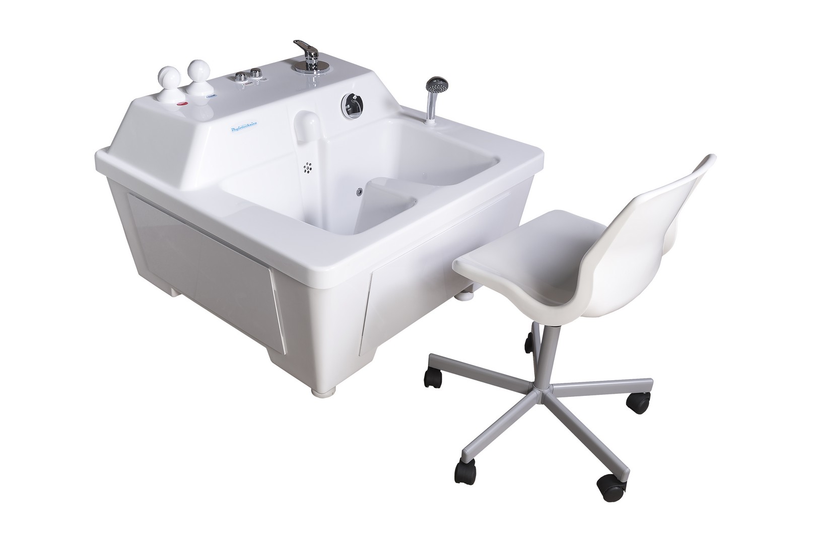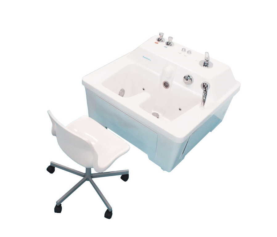 Цветовое исполнение корпуса ванны (ложа и боковых панелей) может быть выбрано из палитры RAL. Стандартными вариантами являются голубой (RAL 5012) или белый (RAL 9003). Для обеспечения максимального комфорта пациента рекомендуется использовать регулируемый по высоте стул с влагостойким покрытием. Для лиц с ограниченными возможностями предусмотрена возможность установки автоматического подъемника для камерных ванн.