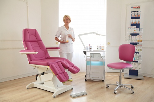 - Обивка выполнена из высококачественной экокожи немецкого производства — это износостойкий, "дышащий" материал с широкой палитрой цветов, устойчивый к воздействию дезинфицирующих растворов, что крайне важно для поддержания гигиенических стандартов.