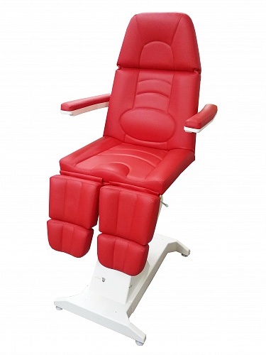 - Два интегрированных электропривода, произведенные в Италии, позволяют точно регулировать высоту кресла и угол наклона сиденья, обеспечивая оптимальное положение для любых процедур.