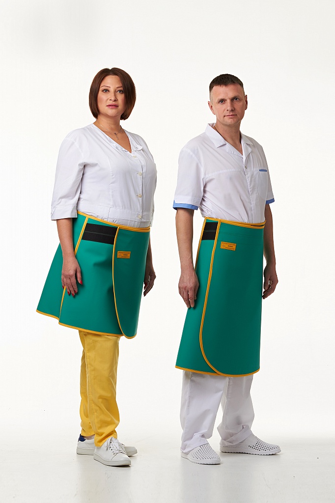 Сочетание юбки с жилетом позволяет добиться максимального уровня защиты всего тела и равномерного распределения весовой нагрузки, что значительно повышает комфорт и свободу передвижения во время процедур. Особенностью данной модели является использование широкой застежки-липучки, которая обеспечивает надежную фиксацию и максимальное перекрытие, гарантируя эффективную защиту костей таза и гонад как пациента, так и специалиста.