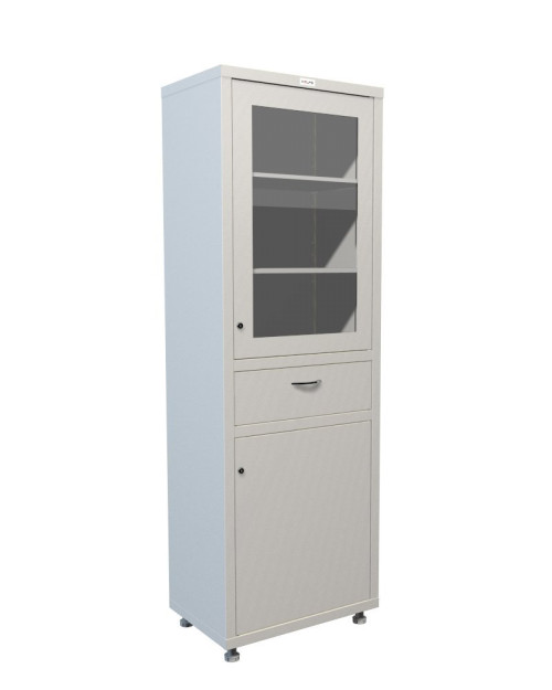 Медицинский шкаф 1780R-1, обладающий высотой 185 см, является оптимальным решением для оснащения различных медицинских учреждений. Продуманная конструкция включает два просторных отделения и удобный выдвижной ящик, что позволяет эффективно организовать хранение значительного объема инструментов, медицинского оборудования и лекарственных препаратов.