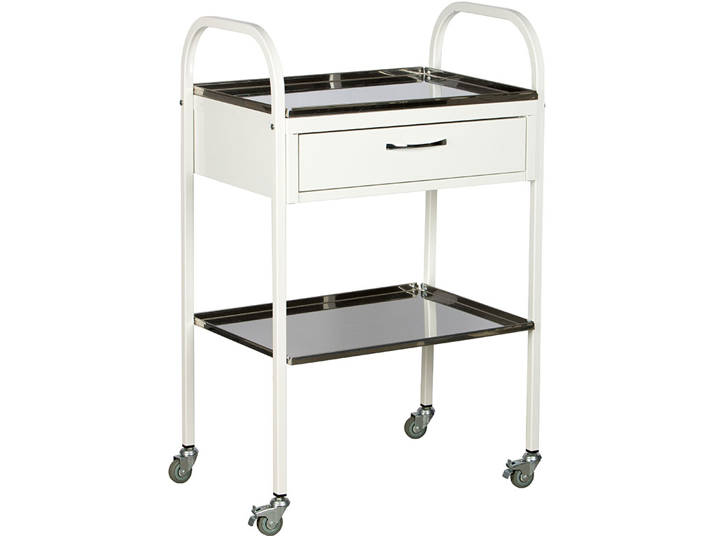 Основа столика изготовлена из профильной трубы квадратного сечения 20х20х1,5 мм, покрытой высококачественной эпоксидно-порошковой краской. Такое покрытие гарантирует исключительную устойчивость к коррозии и механическим повреждениям, а также легкость в уходе. Полки столика, выполненные из нержавеющей стали толщиной 0,8 мм, идеально подходят для размещения медицинских инструментов и расходных материалов, обеспечивая гигиеничность и долговечность.