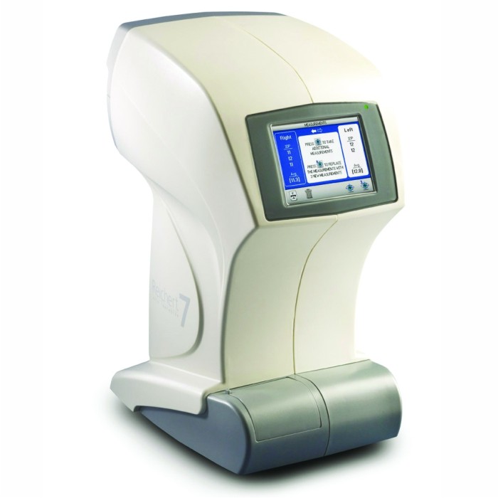 Reichert 7 разработан без традиционных элементов, таких как подбородочник и джойстик, что обеспечивает интуитивное позиционирование пациента. Для проведения измерения достаточно, чтобы пациент прижал голову к упору для лба и зафиксировал взгляд на подсвеченной мишени. Врачу остается лишь нажать одну кнопку на сенсорном экране для одиночного или тройного измерения. Все последующие операции прибор выполняет самостоятельно.