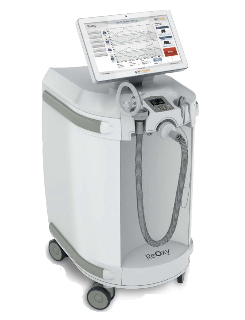 ReOxy — инновационная система для интервальной нормобарической гипокситерапии, предлагающая уникальный подход в режимах «гипоксия-нормоксия-гипероксия». В основе аппарата лежит запатентованная технология SRT®, которая обеспечивает автоматический подбор индивидуально адаптированного уровня гипоксической нагрузки для каждого пациента.