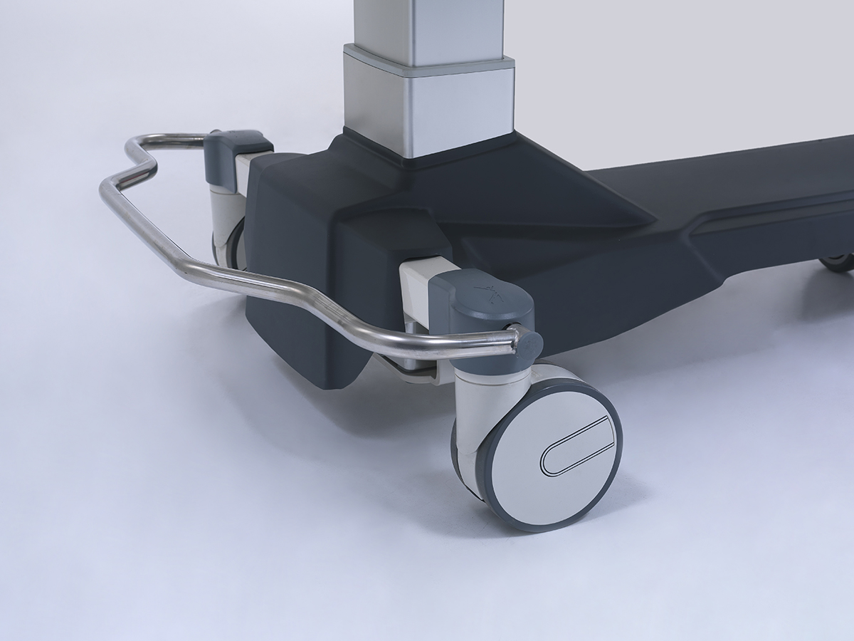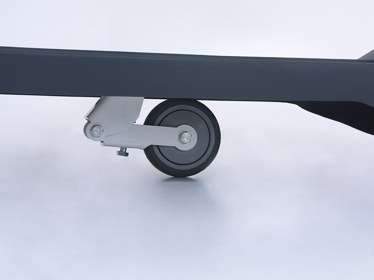 | Колеса | 4 самоориентирующихся на 360º двойных колеса диаметром 150 мм с резиновым покрытием и центральной тормозной системой. |