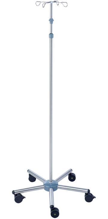 Конструкция стойки выполнена из высококачественной нержавеющей стали и алюминия, что гарантирует её долговечность и устойчивость к внешним воздействиям. Диаметр трубок составляет 25/18 мм, обеспечивая прочность и надежность. Стойка оснащена держателем для инфузионных емкостей с четырьмя крюками из нержавеющей стали, что позволяет удобно размещать до 2 кг на каждый крюк.