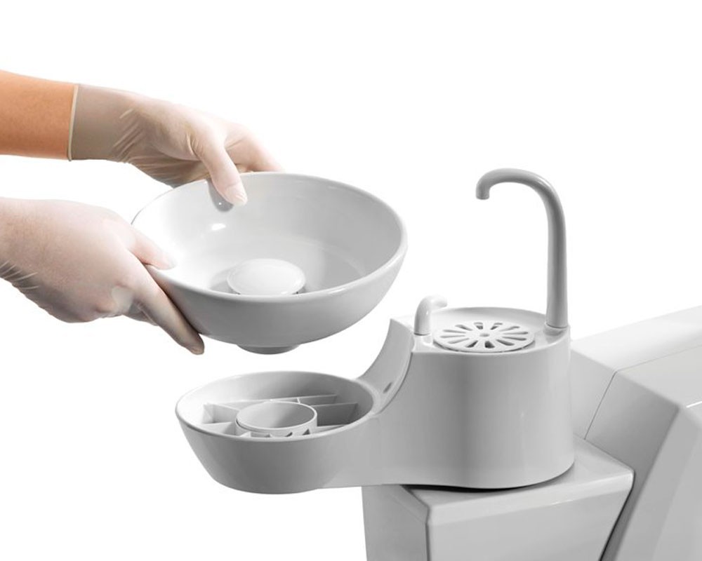 - Автоматическое наполнение стакана пациента и омыв плевательницы повышают удобство использования.