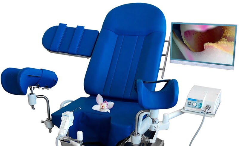 - Гинекологический видеокольпоскоп «Сamscope DCS-102» с электронной CCD видеокамерой (разрешение 480 линий), функцией автоматического баланса белого, автофокусировкой, памятью на 4 изображения, максимальным увеличением 30х, галогенным источником холодного освещения и гибким световодом.