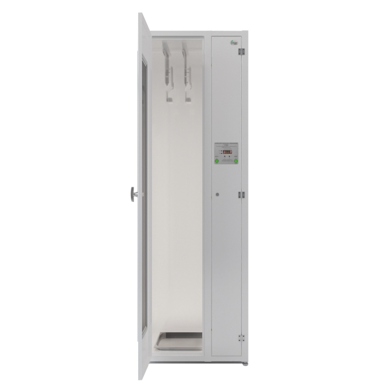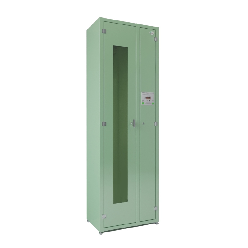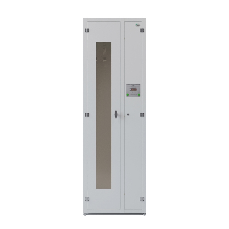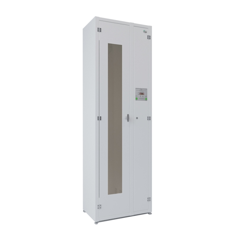 Для удобства обзора содержимого предусмотрена дверь отсека хранения с тонированным окном из поликарбоната. Отсеки воздухоподготовки и хранения оснащены надежными замками, запирающимися на ключ, что обеспечивает дополнительную безопасность. В системе воздухоподготовки используются бактерицидные лампы, не продуцирующие озон, с длиной волны 253,7 нм и суммарной мощностью не менее 30 ВА. Это подтверждает высокую эффективность обеззараживания воздуха.
