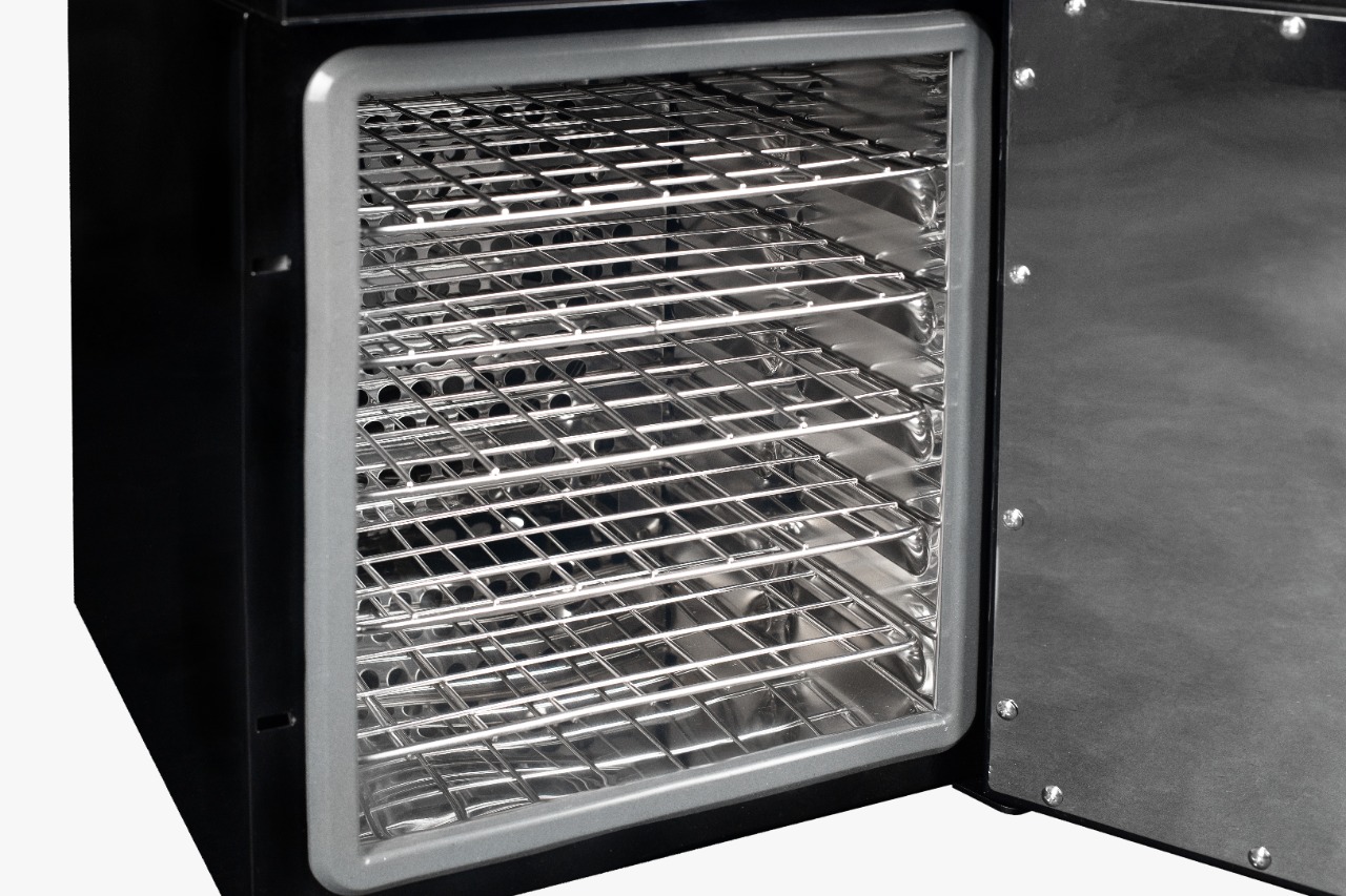 Стерилизационная камера спроектирована с применением передового компьютерного моделирования, что гарантирует максимальное нагнетание воздуха и позволяет удобно размещать инструменты на пяти полочках одновременно.