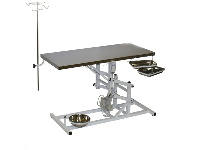 В комплект поставки входят штатив и лотки, которые повышают функциональность стола. Данная модель универсальна и может эффективно использоваться в ветеринарных клиниках, стационарах, а также в груминг-салонах и зоосалонах.