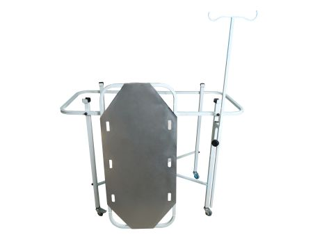 Особенностью данной тележки является функциональная конструкция верхней части, выполненная в виде съемных носилок. Это позволяет оперативно снять их вместе с пациентом и взять с собой на выезд, а затем легко и надежно установить обратно. В комплект поставки включены все необходимые элементы для полноценной работы: съемный штатив для инфузий с двумя крючками, носилки с ложем из высококачественной нержавеющей стали, а также мягкий матрас для носилок, изготовленный из ПВХ и пенополистирола с удобными липучками для надежной фиксации.