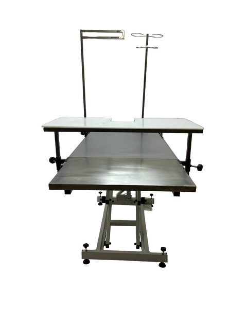 Для максимального удобства ветеринарных хирургов при проведении микрохирургических операций стол оснащен офтальмологической полкой из полипропилена с надежной фиксацией. Полка легко поднимается на 200 мм от основной столешницы, обеспечивая оптимальный доступ к операционному полю. Дополнительная съемная столешница из нержавеющей стали позволяет значительно увеличить рабочую площадь, а возможность ее крепления в любом месте по периметру стола предоставляет дополнительную гибкость.