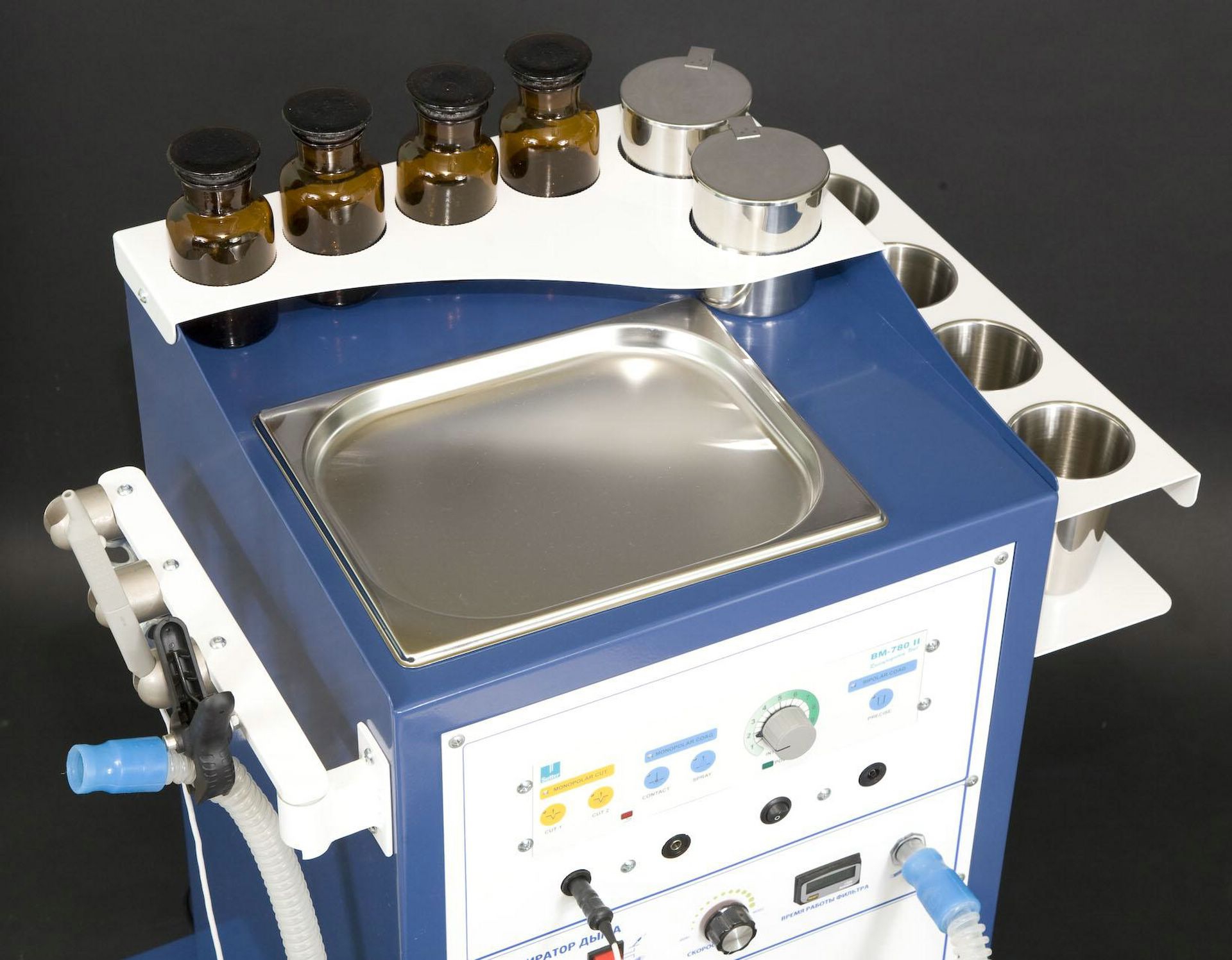 - Высокоэффективная система аспирации дыма с трехступенчатой очисткой, обеспечивающая чистоту воздуха в операционной.