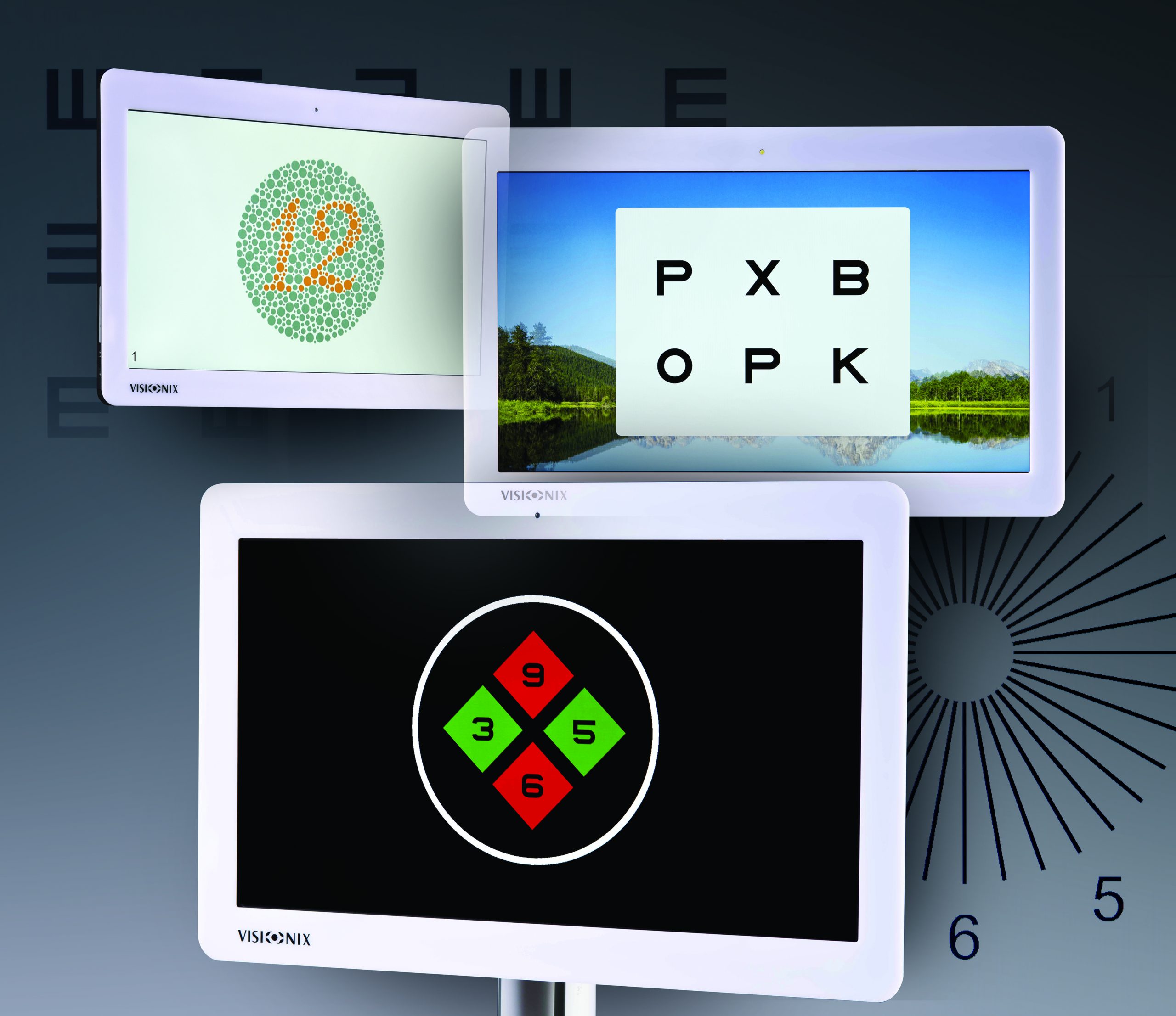 - Гибкое отображение оптотипов: Изолированные оптотипы, линия или треугольник с одинаковой или разной остротой.