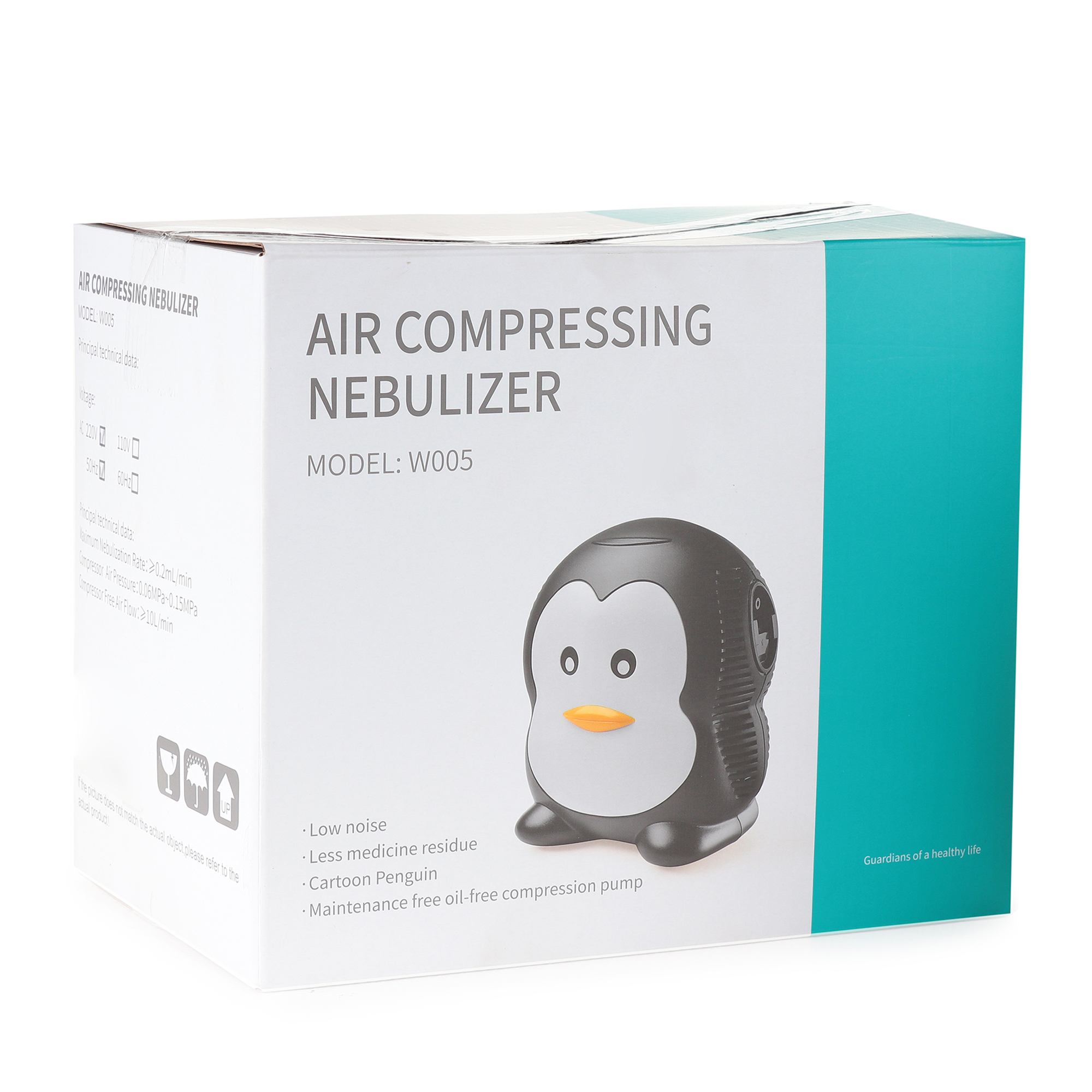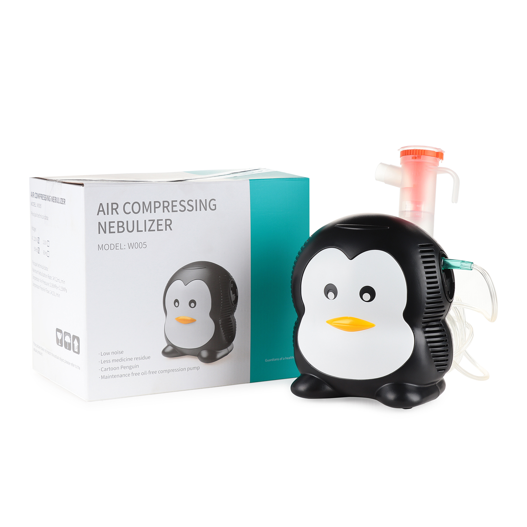 W005: Этот воздушный небулайзер, выполненный в оригинальном дизайне «пингвинёнка», разработан специально для самых маленьких пациентов, снижая их тревогу перед ингаляцией. Инновационное решение превращает терапию в комфортную процедуру, что способствует положительному настрою и ускорению выздоровления. Регулировка воздушного потока позволяет исключить неприятные ощущения, а удобное крепление для лекарств и прорезиненные ножки минимизируют шум и вибрацию.